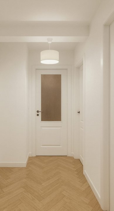Fotografiile cu varianta renovată au titlu de prezentare și ilustrează potențialul estetic al proprietății după reamenajare.