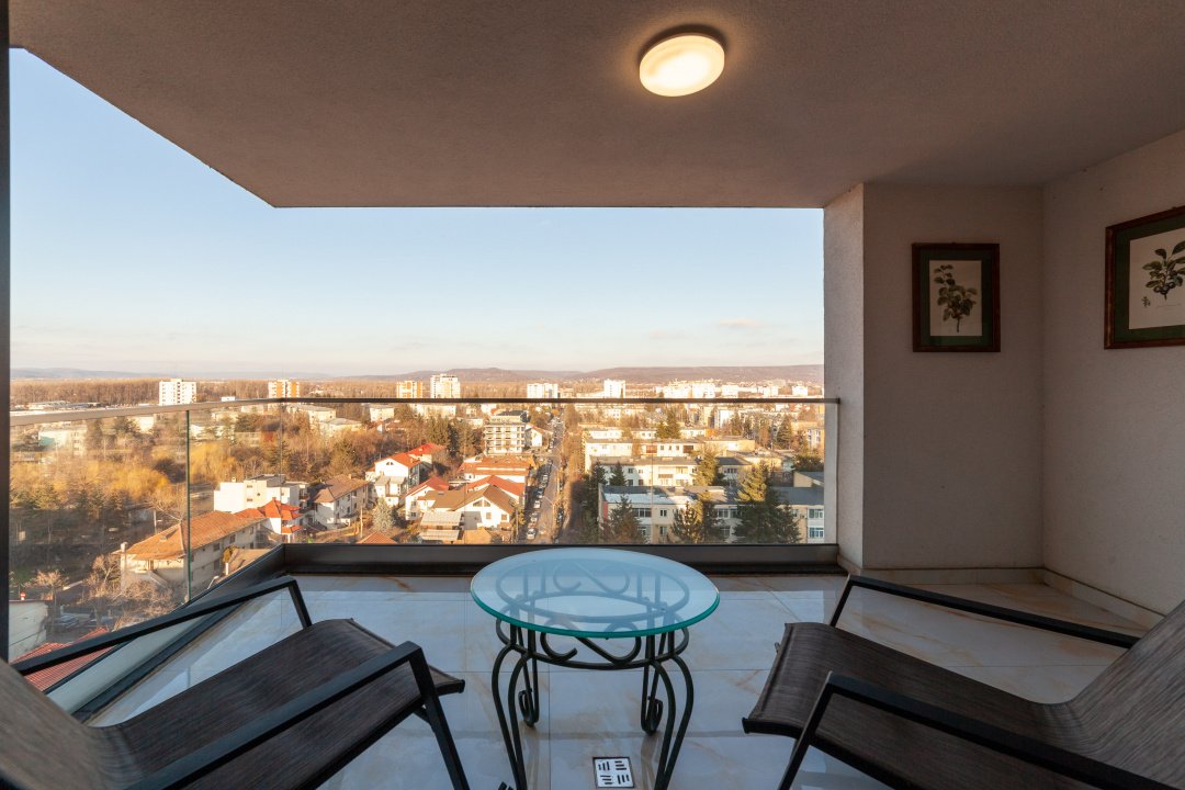 Cele două terase oferă un loc perfect pentru relaxare - se poate admira panorama amplă si spectaculoasa a orașului, dar si crestele muntilor din departare.