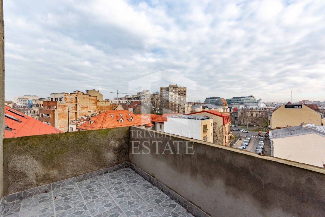 Elementul spectaculos al acestui apartament este, fără îndoială, terasa generoasă. De aici, vă puteți bucura de o vedere liberă și panoramică asupra orașului, un avantaj rar întâlnit în zona ultra centrală, unde densitatea clădirilor este ridicată. Este spațiul ideal pentru relaxare deasupra agitației urbane, oferind un cadru perfect pentru apusuri memorabile și momente de liniște.