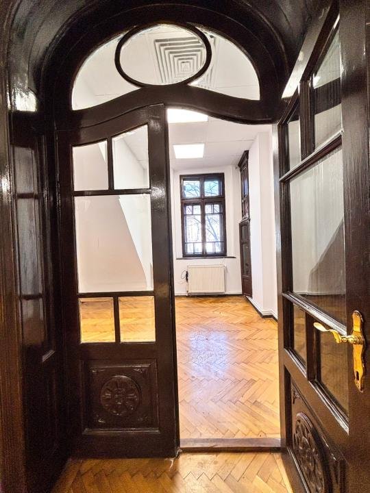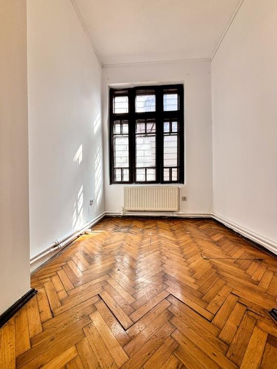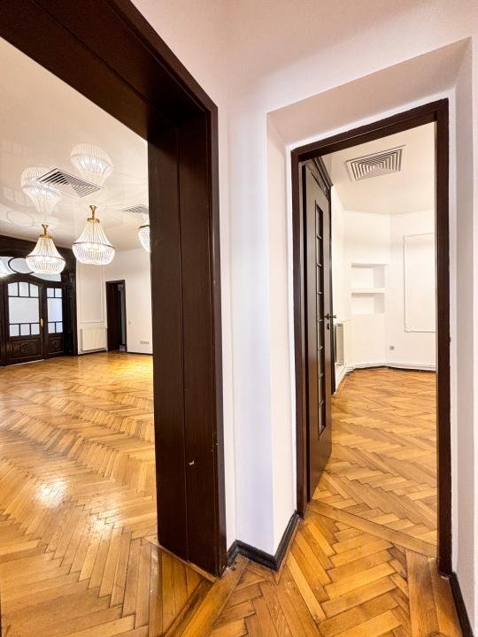 PARCHETUL original din lemn masiv a fost restaurat, iar ușile din lemn păstrează CRISTALE de Bohemia prismatice într-o stare excelentă.