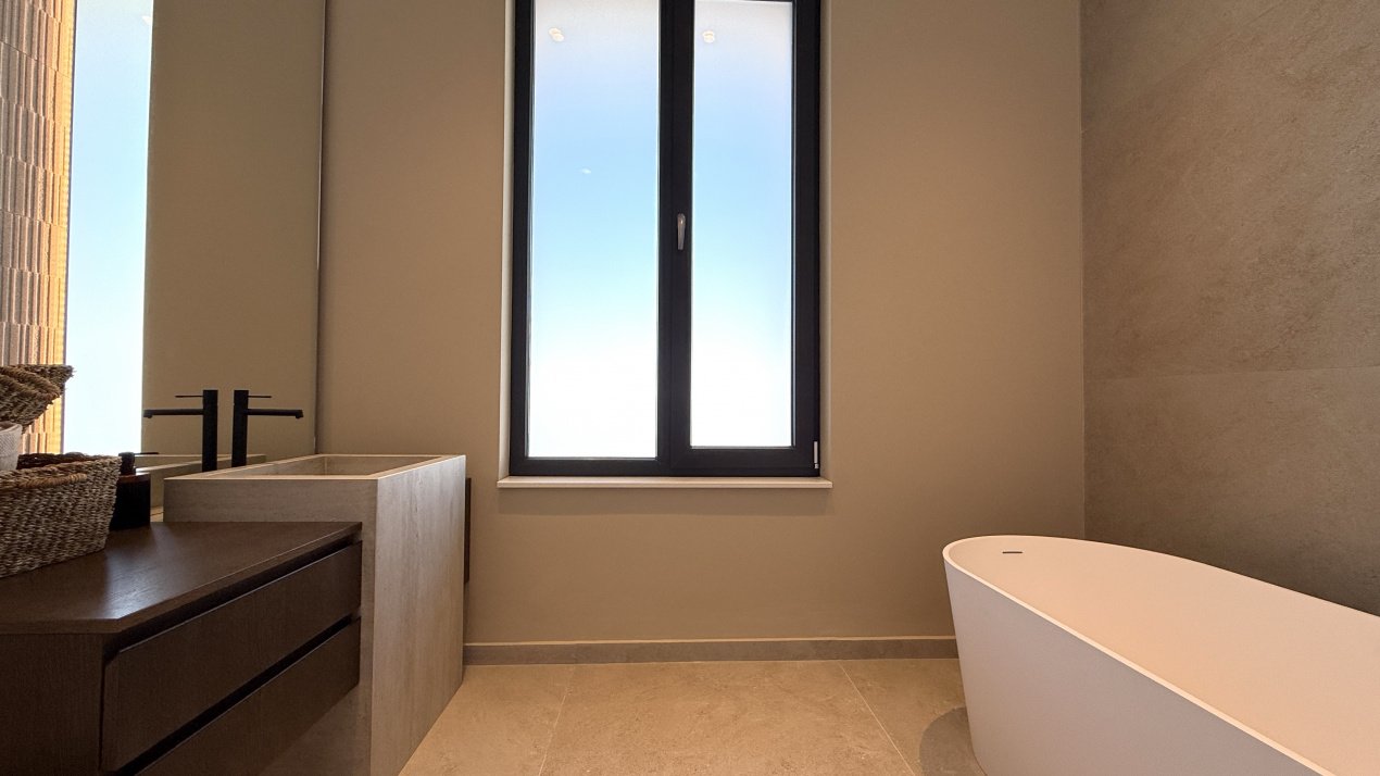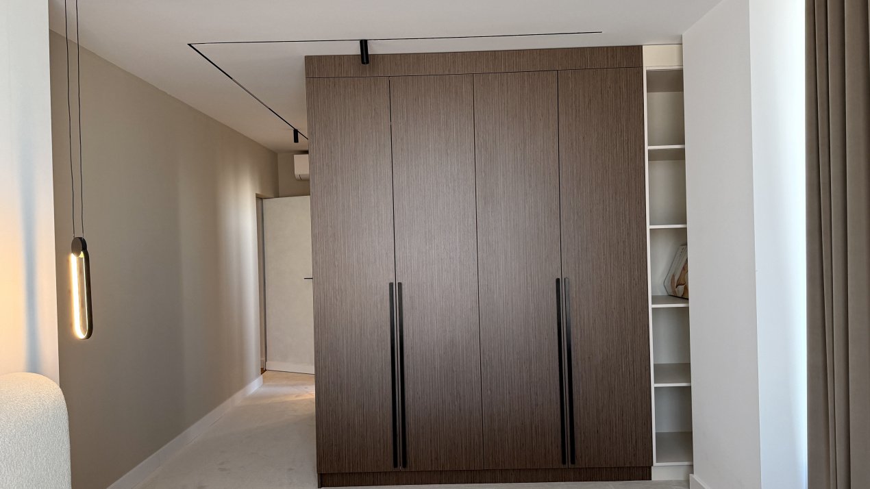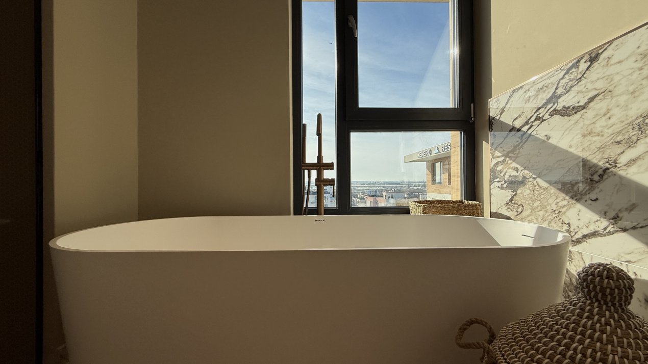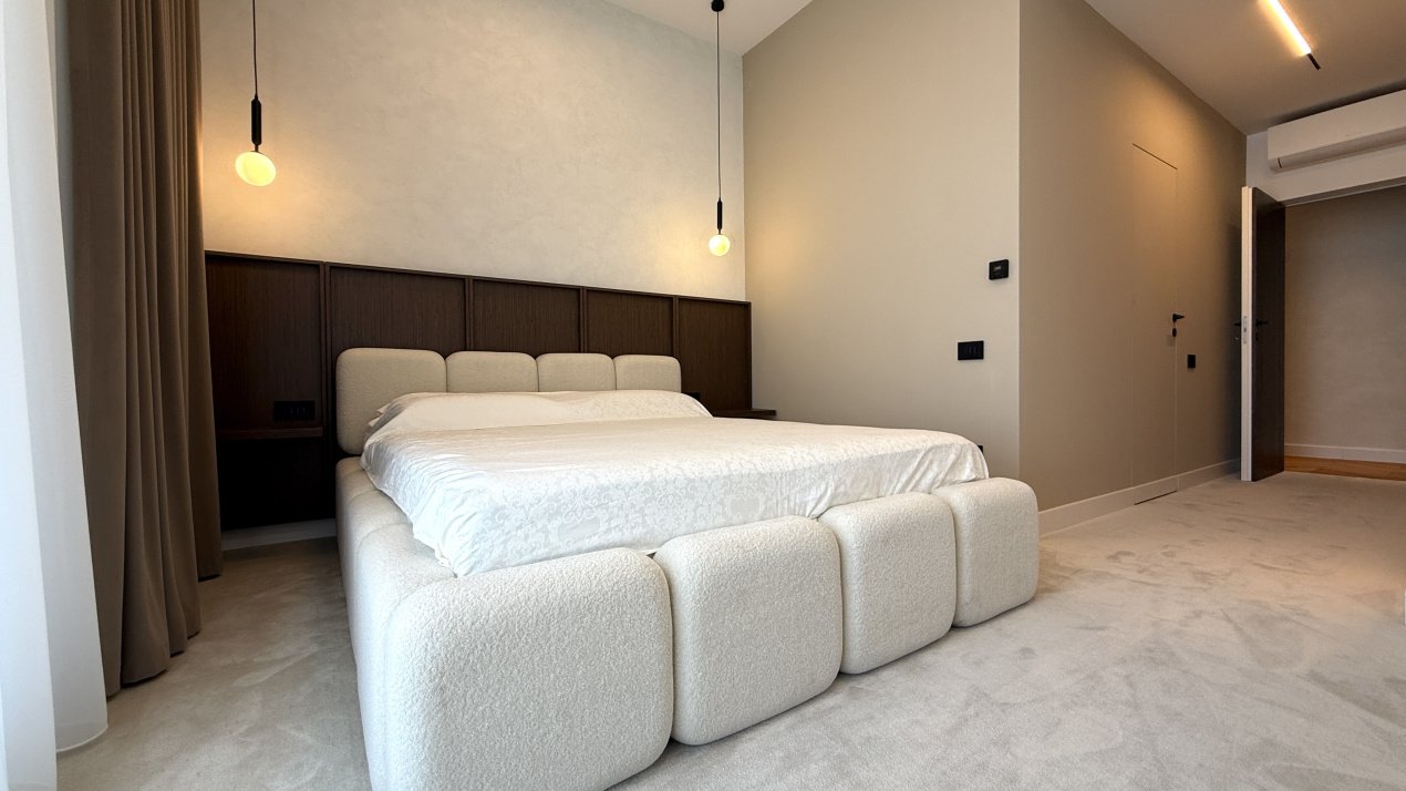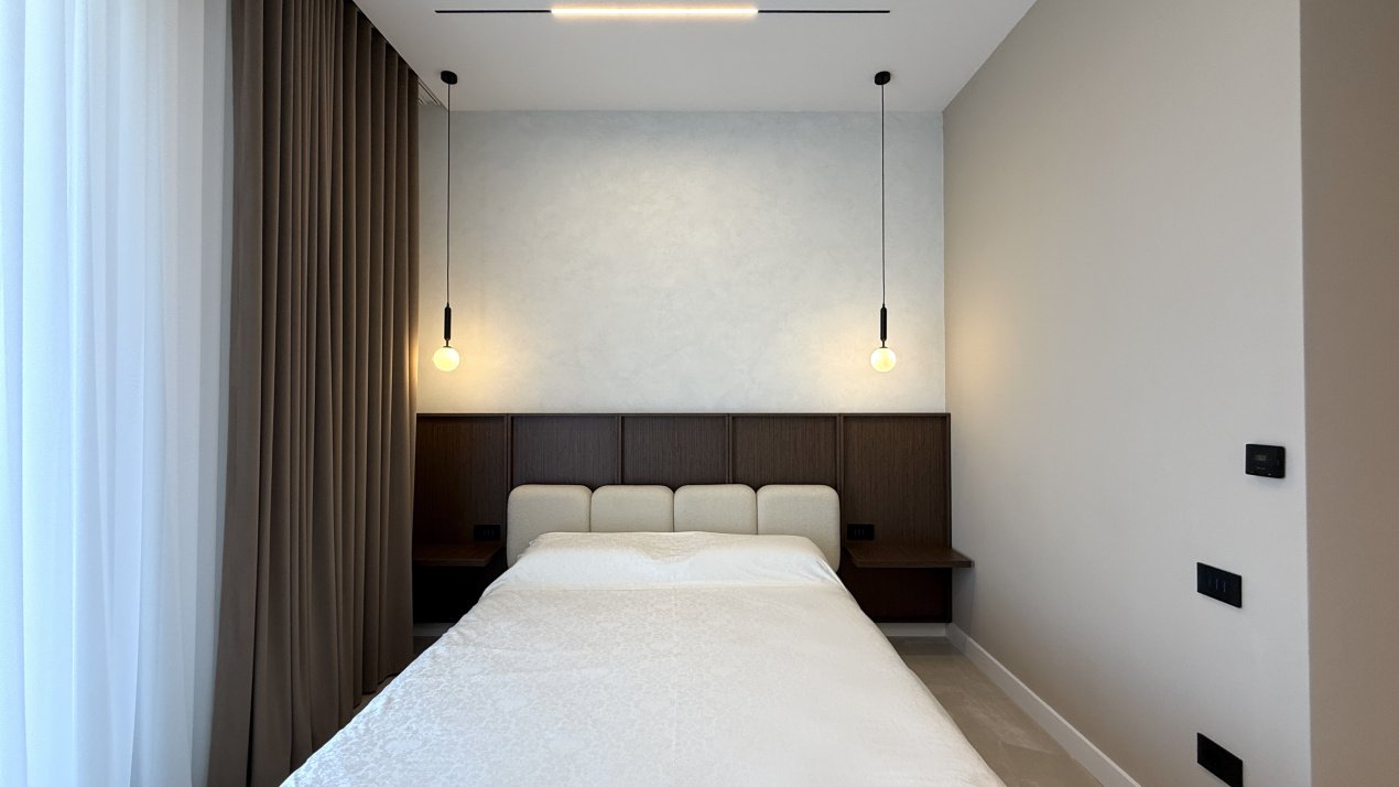 Lumina naturală inundă fiecare încăpere datorită suprafețelor vitrate generoase, iar compartimentarea deschisă creează un ambient aerisit și rafinat. Întregul apartament a fost amenajat cu atenție la fiecare detaliu, pe baza unui proiect de design interior realizat de o echipă profesionistă, unde mobilierul și elementele decorative se îmbină armonios pentru a crea o atmosferă elegantă și primitoare.