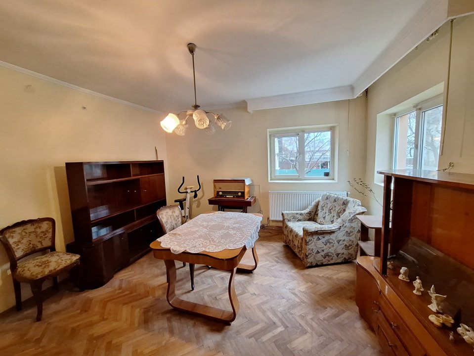 Va prezentam spre inchiriere o casa centrala pentru o activitate comerciala, birou sau cabinet. Situată în inima orașului, aceasta minunata casa este o bucată autentică din istoria Pitestiului . Cu o arhitectură specifica anilor "60, această locuință emana un farmec aparte. Dispune de trei camere, baie ,bucatarie si 2 holuri . În plus, fiind situată în centrul orașului, veți avea acces ușor la toate facilitățile urbane. Daca iti place ce vezi in fotografii, si tocmai erai in cautarea unei proprietati in zona, haide sa o vizitam impreuna! Chiriasul beneficieaza de 0% comision.
