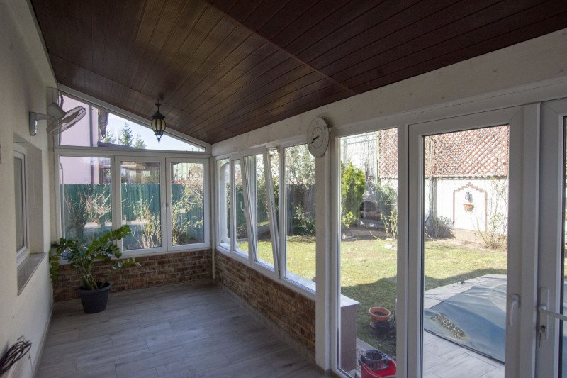 Living luminos, cu acces direct către terasă închisă, utilizabilă și în sezonul rece.