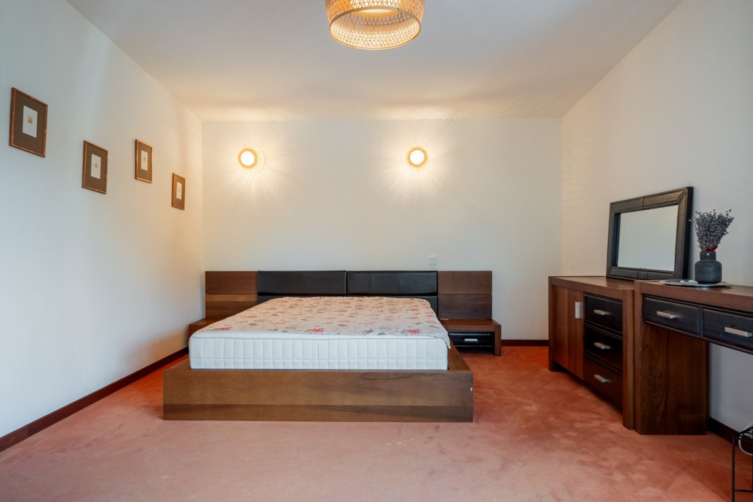 Casa este dispusa pe parter si etaj, avand dormitoare foarte spatioase, unul la parter si doua la etaj, suprafete vitrate mari, intimitate si eleganta.