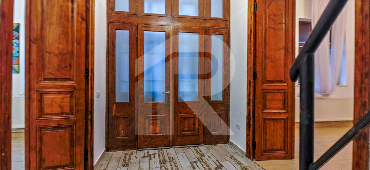Elemente vintage păstrate (uși masive lemn, grinzi aparente)