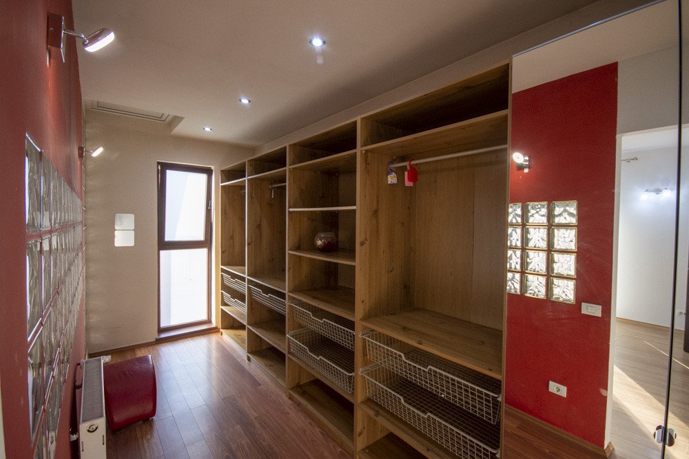 La un nivel intermediar: spațiu suplimentar de depozitare, dormitor matrimonial cu terasă proprie de 15 mp, dressing generos și baie privată