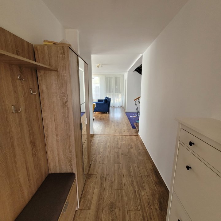 Oferim spre închiriere o casă modernă, cu o suprafață de 240 mp utili, complet mobilată și utilată, situată în complexul rezidențial North Point Residence, un cartier liniștit, cu acces securizat, loc de joacă pentru copii și administrator/handyman disponibil permanent.