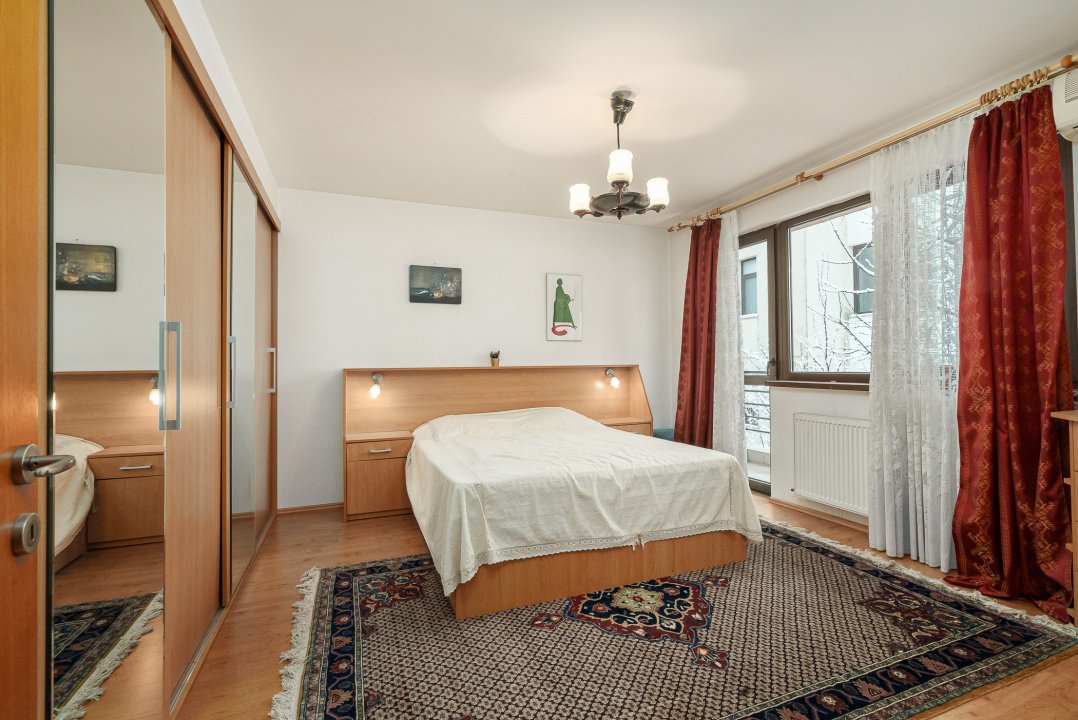 Casa se inchiriaza mobilata si utilata complet, dotata cu centrala termica proprie cu boiler inclus, cu aparate de aer conditionat, masina de spalat, aparatura electronica si electrocasnica. Un dormitor, situat la etajul unu, este gol, nemobilat. Exista deschidere din partea proprietarilor in ce priveste aducerea altor obiecte de mobilier in locuinta, fie ca sunt ale chiriasilor, fie ca sunt solicitate proprietarilor, precum si pentru dotarea cu alte aparate electrocasnice. Totul depinde de chirias si perioada contractuala, iar fiecare situatie se discuta in parte.