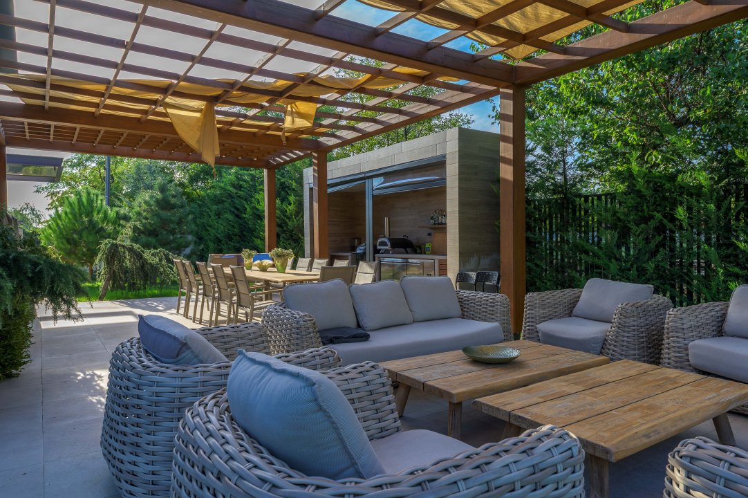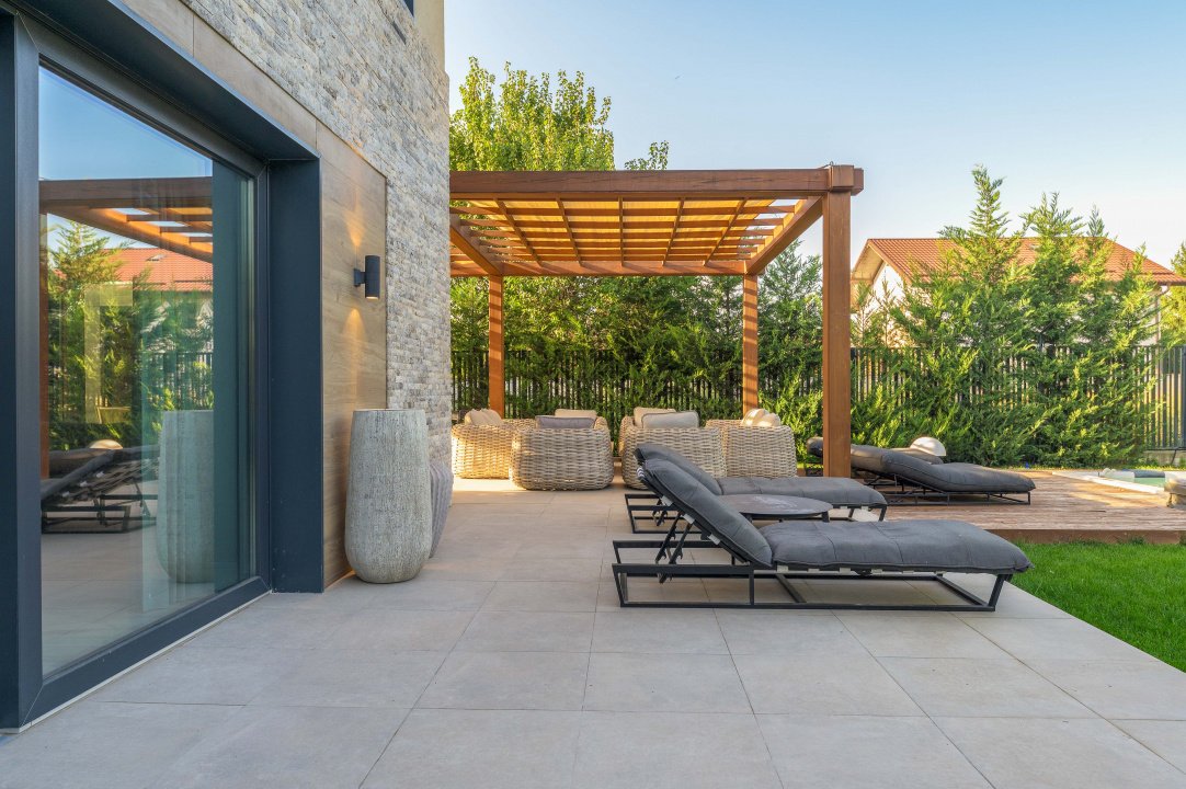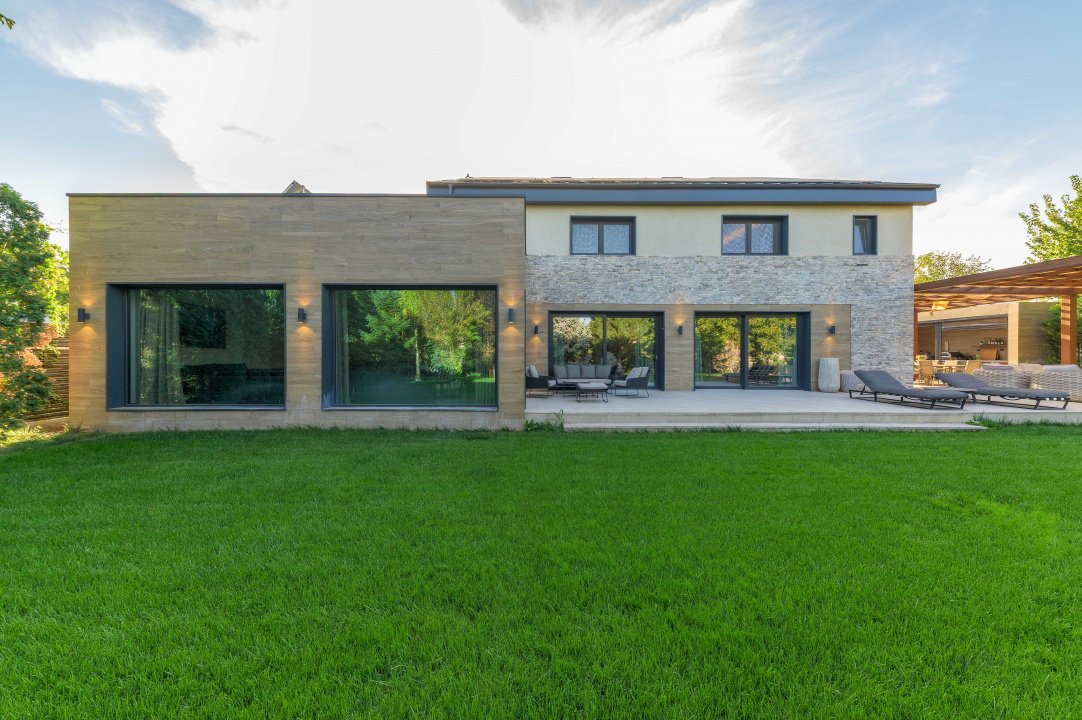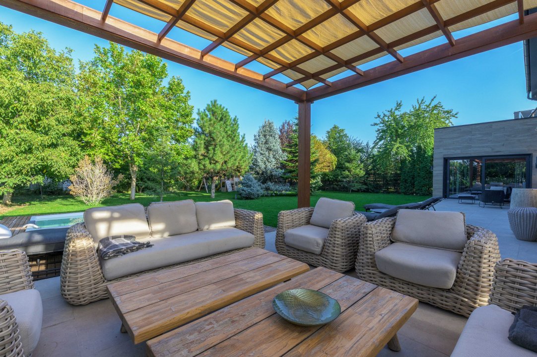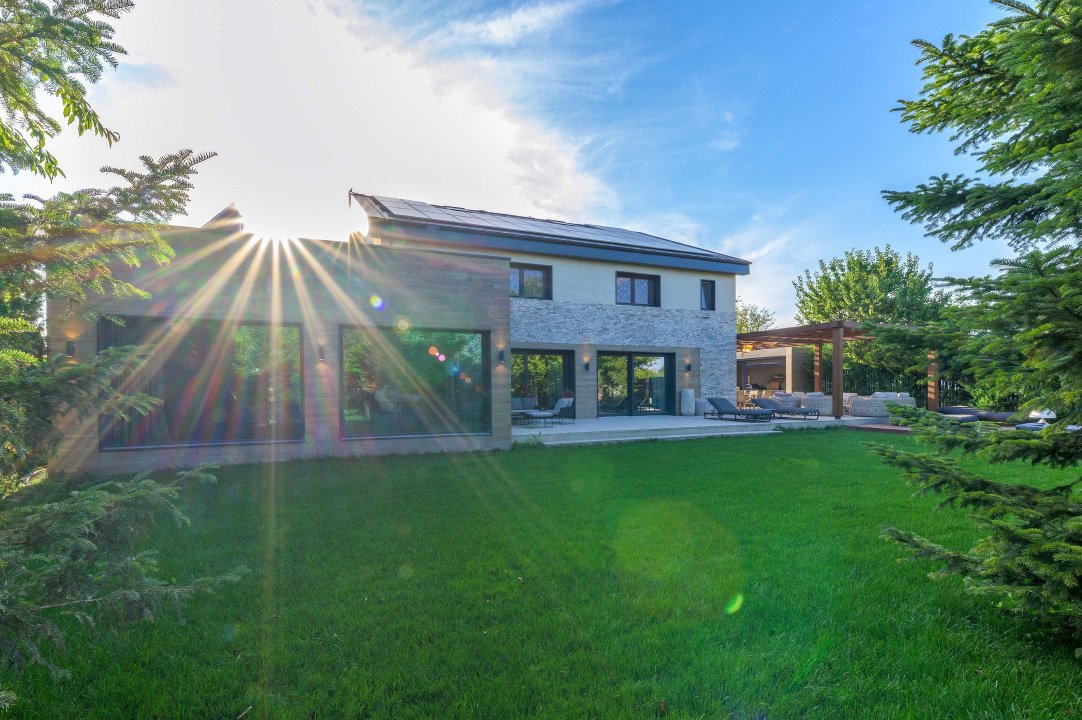 TUNARI, VILA MODERNA - 400 MP TOTAL, 1500 MP LOT! Acces rapid din A3, zona aerisita.Vila prestigioasa si perfect compartimentata, ideala pentru familiile ce isi doresc statut, intimitate si securitate. Lot amenajat peisagistic, vegetație matura, jacuzzi, bucatarie exterioara, loc de joaca pentru copii, gazon si sistem de irigatii, patio dining, garaj, locuri de parcare. Interior superb amenajat, la cheie, 3 master bedroom cu baie si dressing, 2 livinguri, dining, bucatarie cu insula centrala, birou, spatii depozitare, laundryroom, mansarda amenajată pentru personal.