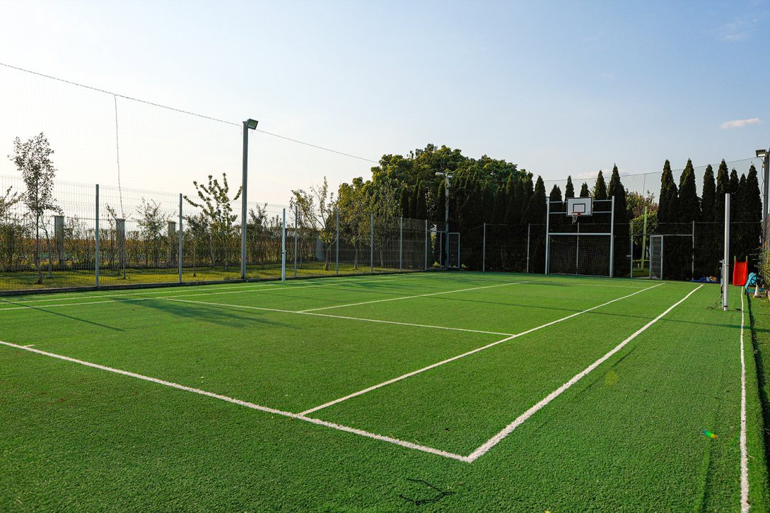 Dotări: Tenis, volei, fotbal, handbal, baschet, sistem de iluminat performant, nocturnă.
