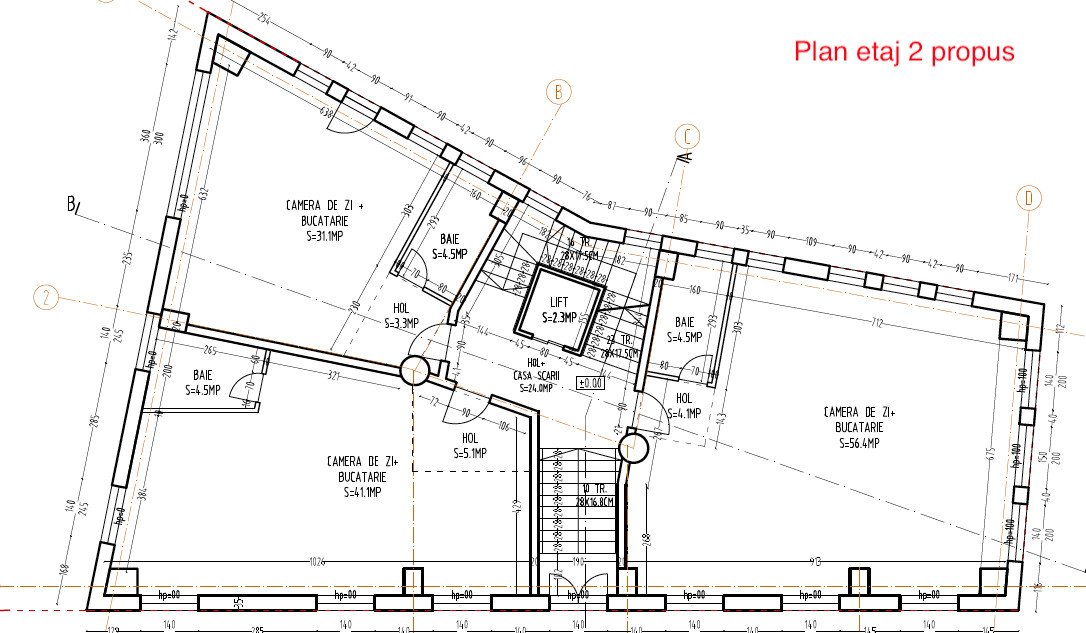 Suprafața totală desfasurată a imobilului este de 657 mp