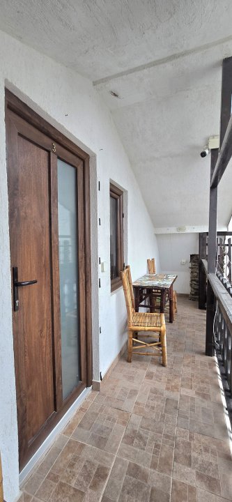Cu un regim de înălțime P+2, proprietatea dispune de 16 camere, fiecare cu acces la balcoane, oferind lumină, intimitate și o atmosferă caldă, relaxantă. Curtea și terasa completează perfect experiența, fiind spații ideale pentru momentele liniștite ale dimineților de vacanță sau serile târzii de vară.