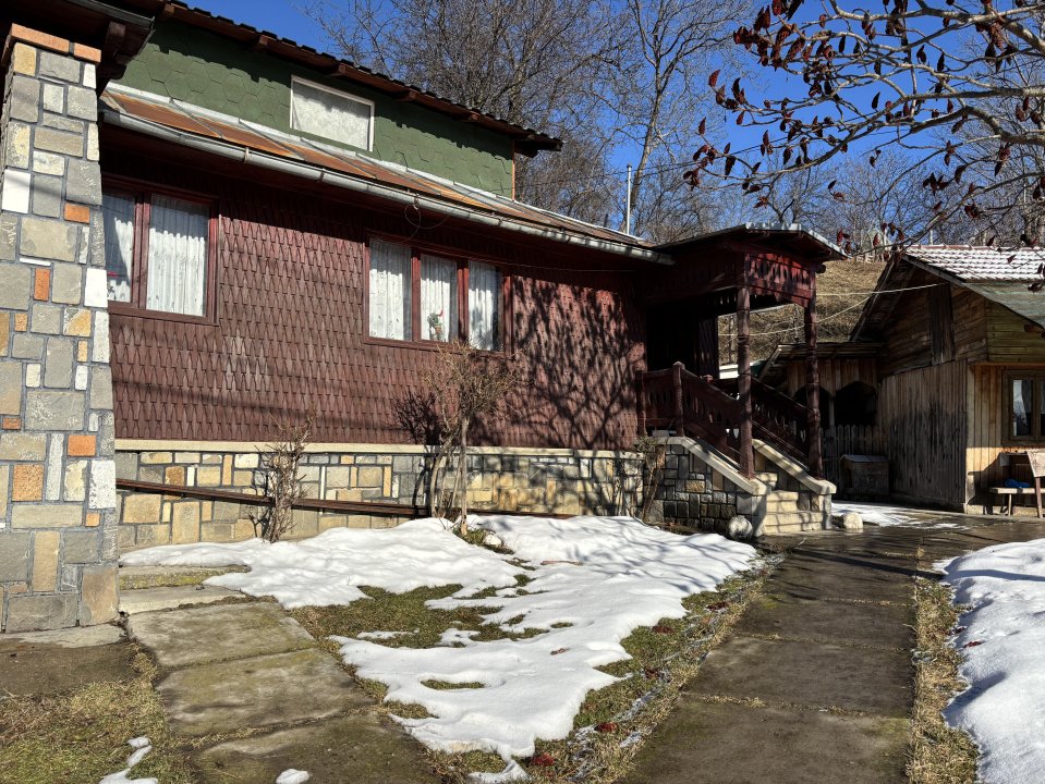 Cadrul natural din jur este deosebit, zona oferă liniște și intimitate, iar elementele de piatră combinate cu lemn dau farmec casei și o integrează foarte frumos în peisaj.