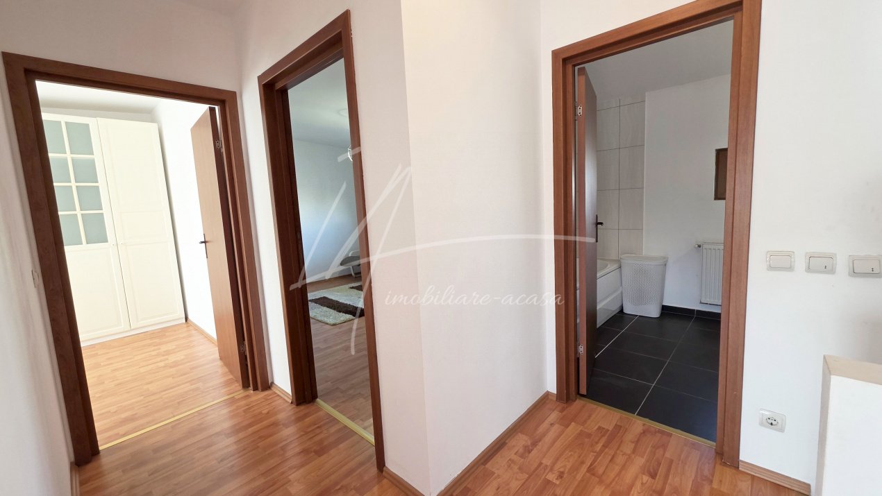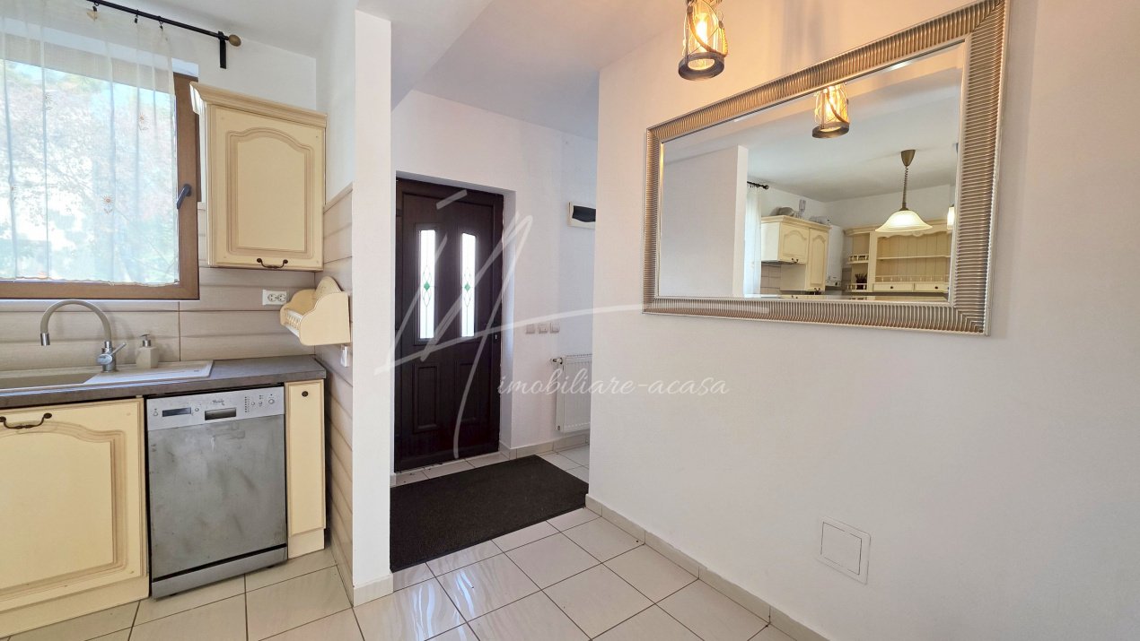 Altfel, casa, pe cat de generoasa si confortabila, este pe atat de intima, atat cat isi doreste orice familie doritoare de liniste si confort sporit. Caci, in completarea livingului imens cu bucatarie deschisa si echipata complet, a dinning-ului si grupului sanitar de la parter, se regasesc la etaj trei dormitoare individuale si o baie, toate in aceeasi nota reconfortanta.
