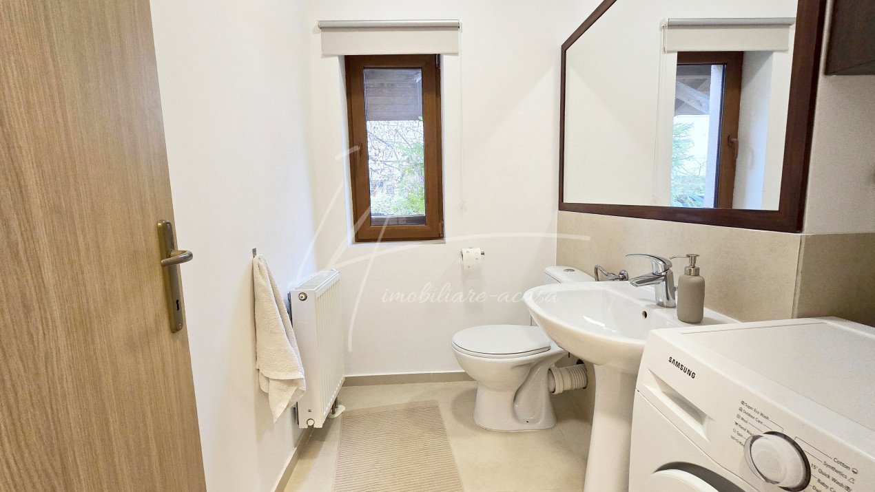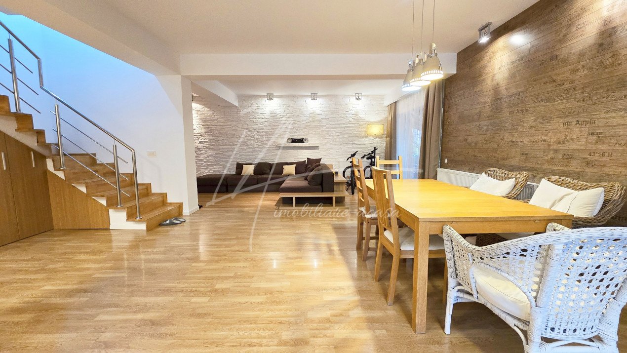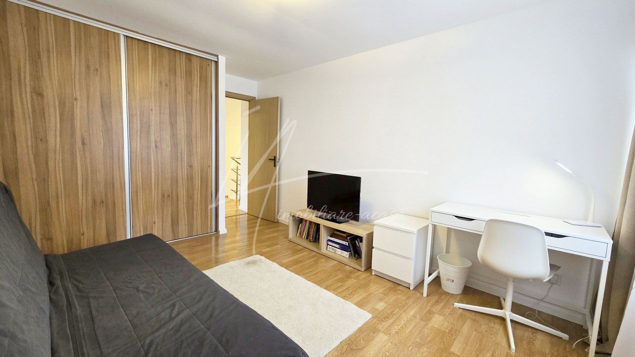 Altfel, casa, pe cat de generoasa si confortabila, este pe atat de intima, atat cat isi doreste orice familie doritoare de liniste si confort sporit. Caci, in completarea livingului imens cu bucatarie deschisa si echipata complet, a dinning-ului si grupului sanitar de la parter, se regasesc la etaj doua dormitoare individuale, o baie si un dormitor matrimonial cu baie proprie, toate in aceeasi nota reconfortanta.