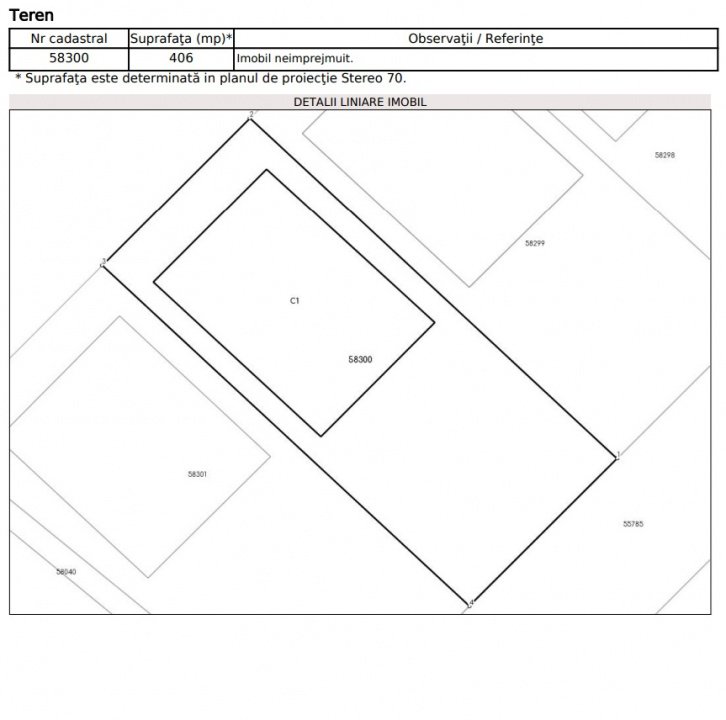 Terenul are o supafata de 406 mp, cu deschidere de 13 ml, este imprejmuit cu gard ce ofera intimitate si siguranta.