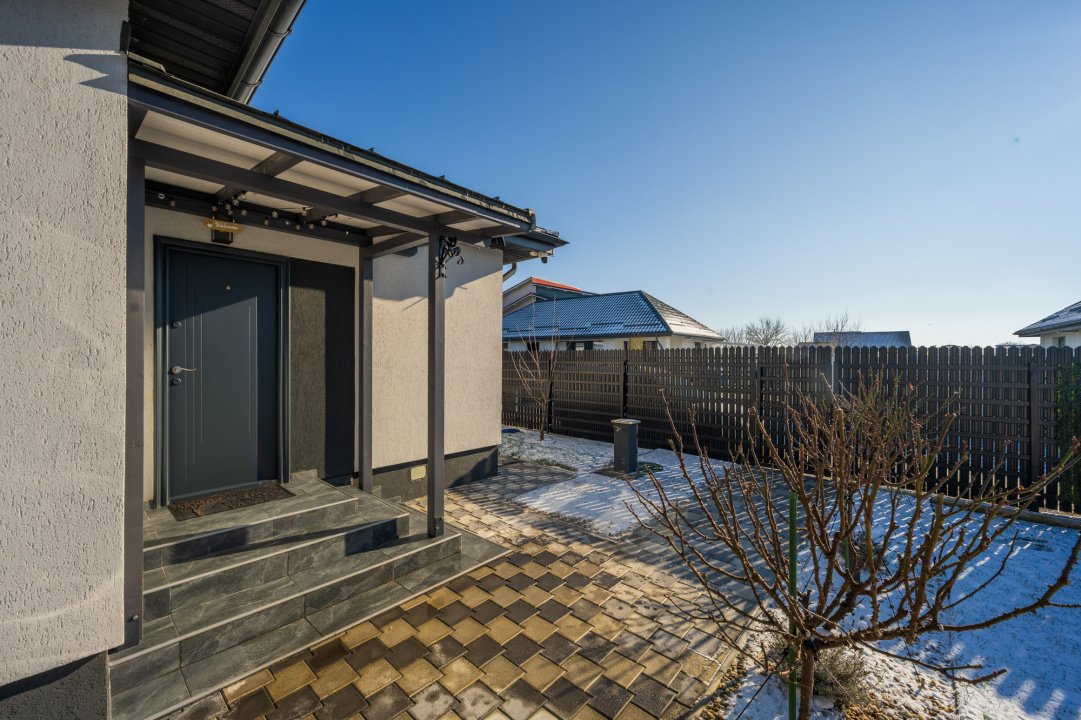 Aceasta este o locuință potrivită pentru cei care își doresc liniștea unui complex de case pe parter și confortul unei case recente, deja „așezate”.
