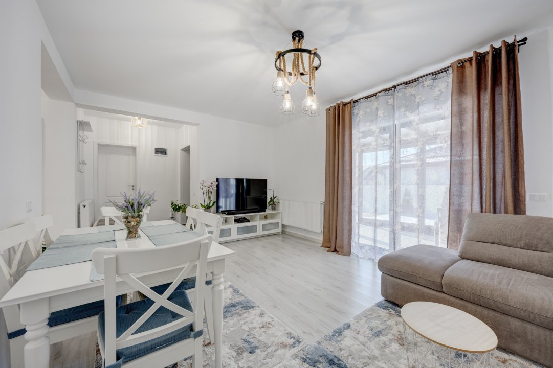 Casa se predă, în mare parte, mobilată și utilată, cu mobilier de calitate, ales special pentru dimensiunile și funcționalitatea fiecărui spațiu.