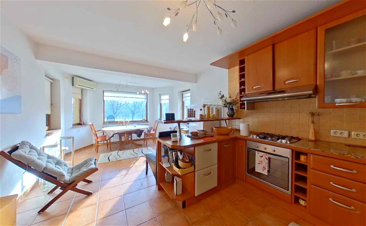🔹️ Living generos + bucatarie cu loc de luat masa cu view spre lac