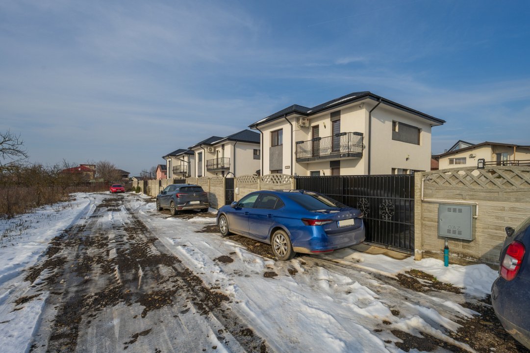 Casa face parte dintr-un proiect de 8 case individuale, finalizate in anii 2023-2024. Este construita pe un lot de teren in suprafata de 265 mp si este dispusa pe parter si etaj si beneficiaza si de un pod pentru depozitare. Casa are o suprafata totala de 129,5 mp, din care 114 mp sunt utili.