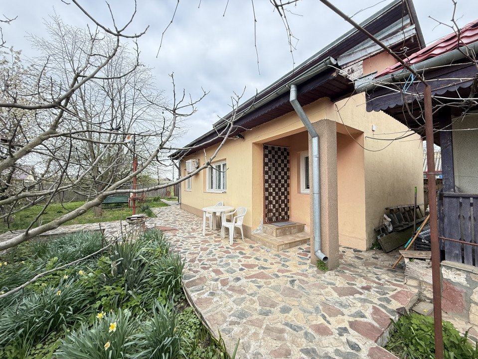 Proprietatea, de vanzare, este compusa dintr-un teren total de 1870mp: livada de 1500mp si curte amenajata cu gradina, foisor, gratar, balansoar si alte dependinte. Livada este formata din pomi fructiferi maturi, pe rod.