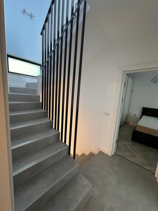 La parter găsim living, bucătărie, un grup sanitar și o terasă. Urcând la etaj găsim două dormitoare, fiecare cu baie si dressing propriu, iar la etajul 2 retras o cameră versatilă, un grup sanitar si o terasă în suprafată de 22 mp. Locuința se predă complet mobilată și utilată, având toate actele la zi (cadastru și intabulare) si un loc de parcare inclus. Construcția a fost finalizată în anul 2022, fiind realizată din materiale de calitate, cu finisaje moderne și o compartimentare eficientă.