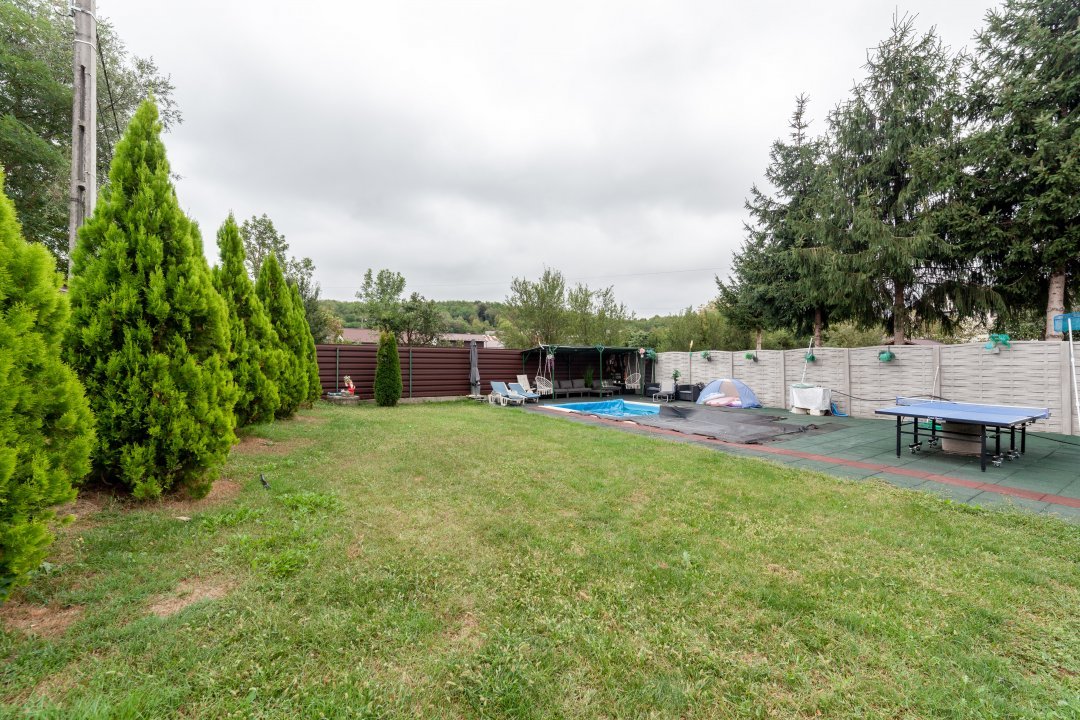 Casa cu piscina in Mioveni, Racovita. Asezata intr-o zona linistita, inconjurata de verdeata si aer curat, aceasta locuinta iti ofera sentimentul ca esti departe de aglomeratie, desi ramai aproape de oras. La cativa pasi gasesti un spatiu de relaxare in aer liber si un teren de fotbal luminat seara, un loc unde copiii se intalnesc si cartierul prinde viata.