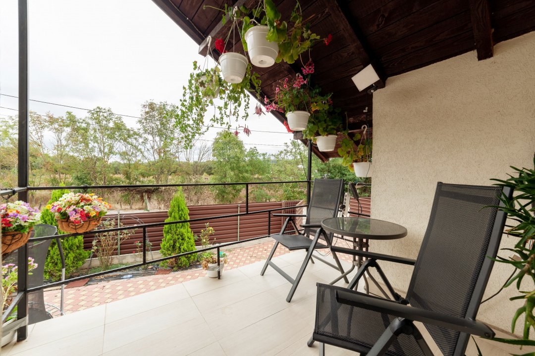 În Racovița, timpul curge altfel: dimineți senine, prânzuri la piscină și seri liniștite pe balcon.
