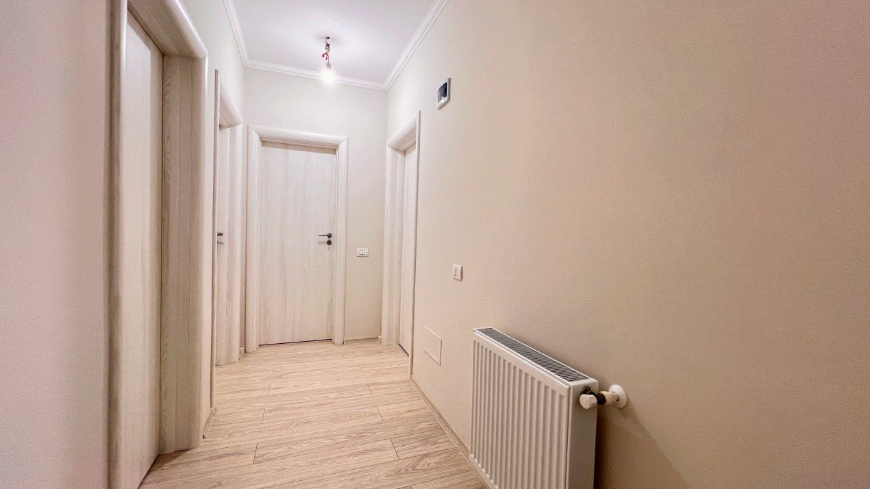 Constructia este realizata pe cadre din beton si caramida, cu tamplarie Salamander bluEvolution de 82 mm, geam tripan de 44 mm, 4 anotimpuri, si feronerie germana Roto – detalii care contribuie la confort si eficienta energetica.