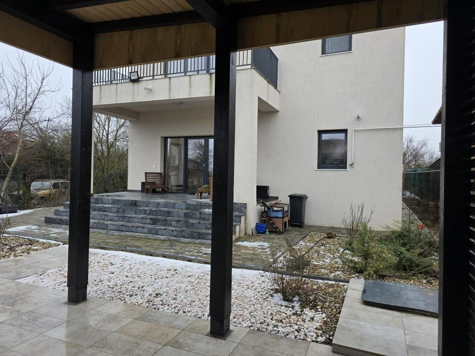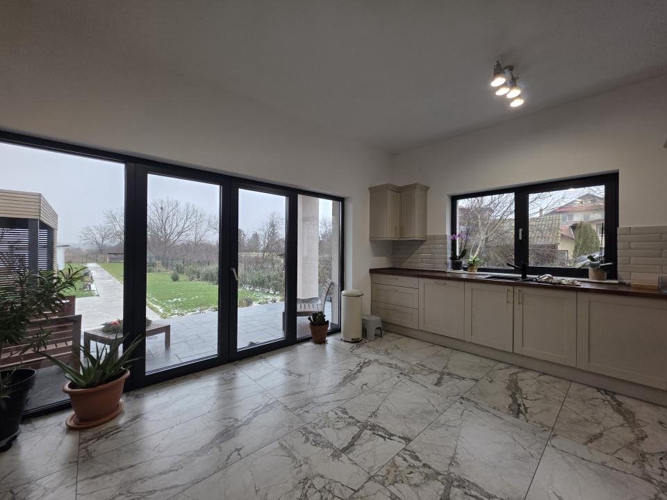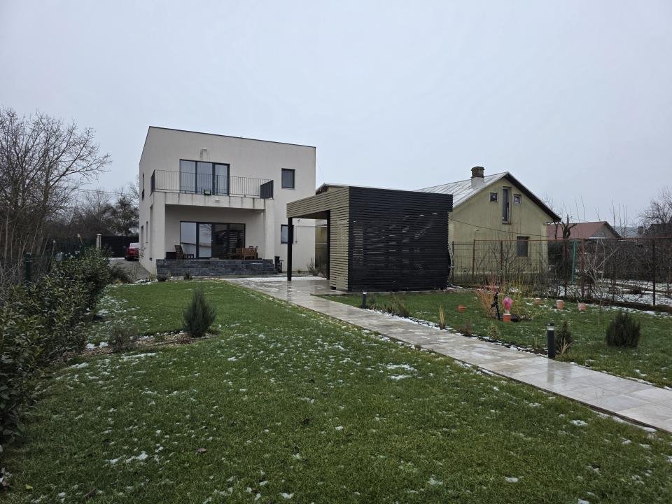 La parter, livingul de 35 mp devine centrul casei, separat elegant de bucătăria închisă, complet utilată, ideală pentru cei care apreciază ordinea și intimitatea. Etajul este dedicat zonei de noapte, cu trei dormitoare spațioase, dressing și băi corect dimensionate.