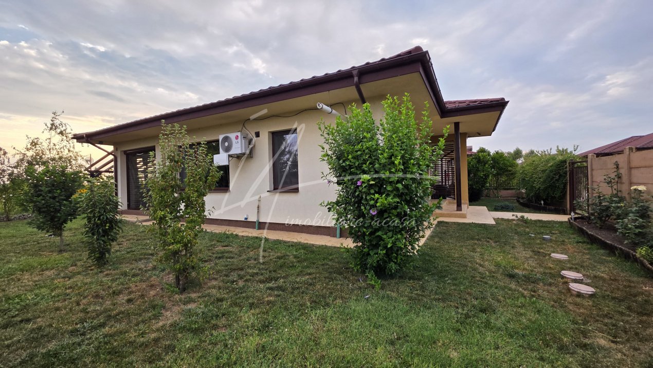 Exteriorul este la fel de impresionant: o curte amenajată superb, cu foișor, gazon, pivniță și o mini-livadă cu pomi fructiferi pe rod.