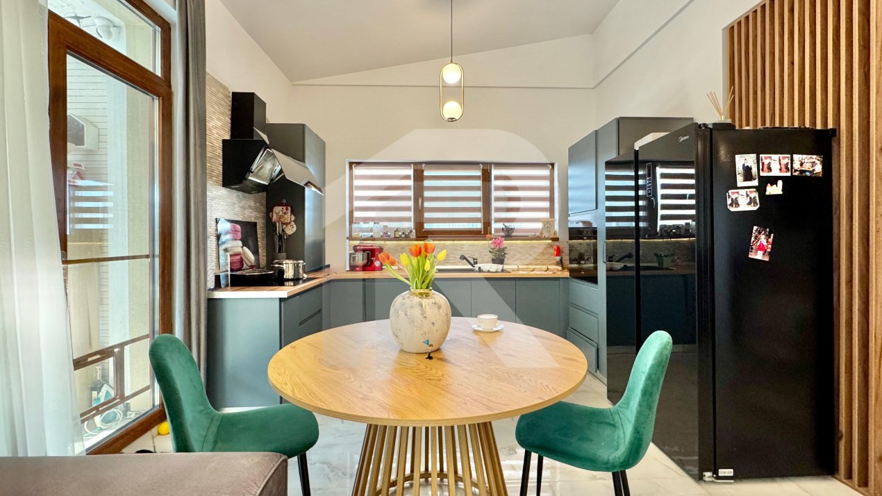 Dispune de 4 camere la care se adauga o terasa inchisa in sticla. Incalzirea se realizeaza prin pardoseala cu ajutorul unei centrale termice prin condensare.