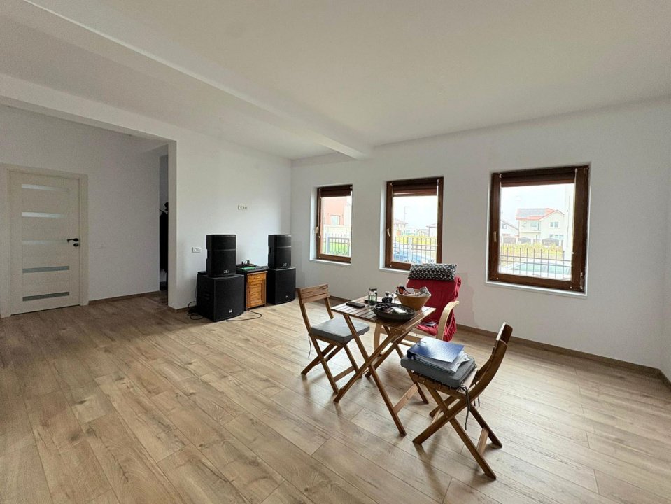 Proprietatea de vinde finisata complet cu : gresie, faianta, parchet, tamplarie PVC Salamander, Usi interior, Obiecte sanitare, incalzire in pardoseala, izolatie exterioara cu polistiren de 10cm, acoperis din tigla Bramac.