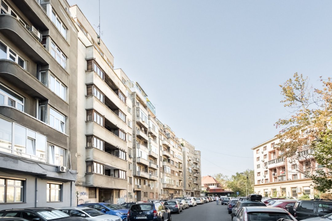 Va propunem spre achizitie un imobil ART DECO, situat in inima orasului, la doi pasi de Centrul Vechi, langa Hanul Berarilor. Imobilul a fost construit in perioada 1935-1936 si a fost dat in folosinta in 1937, fiind compus din 17 apartamente, dispuse pe 6 etaje si un etaj retras. Cladirea pastreaza toate elementele originale din constructie, mozaic, marmura, parchet din lemn masiv, dusuri suedeze, scafe si usi de lemn masiv. Imobilul dispune de doua lifturi, unul principal si unul pentru scara de serviciu, aferent camerelor servitorilor si aprovizionarii apartamentelor.