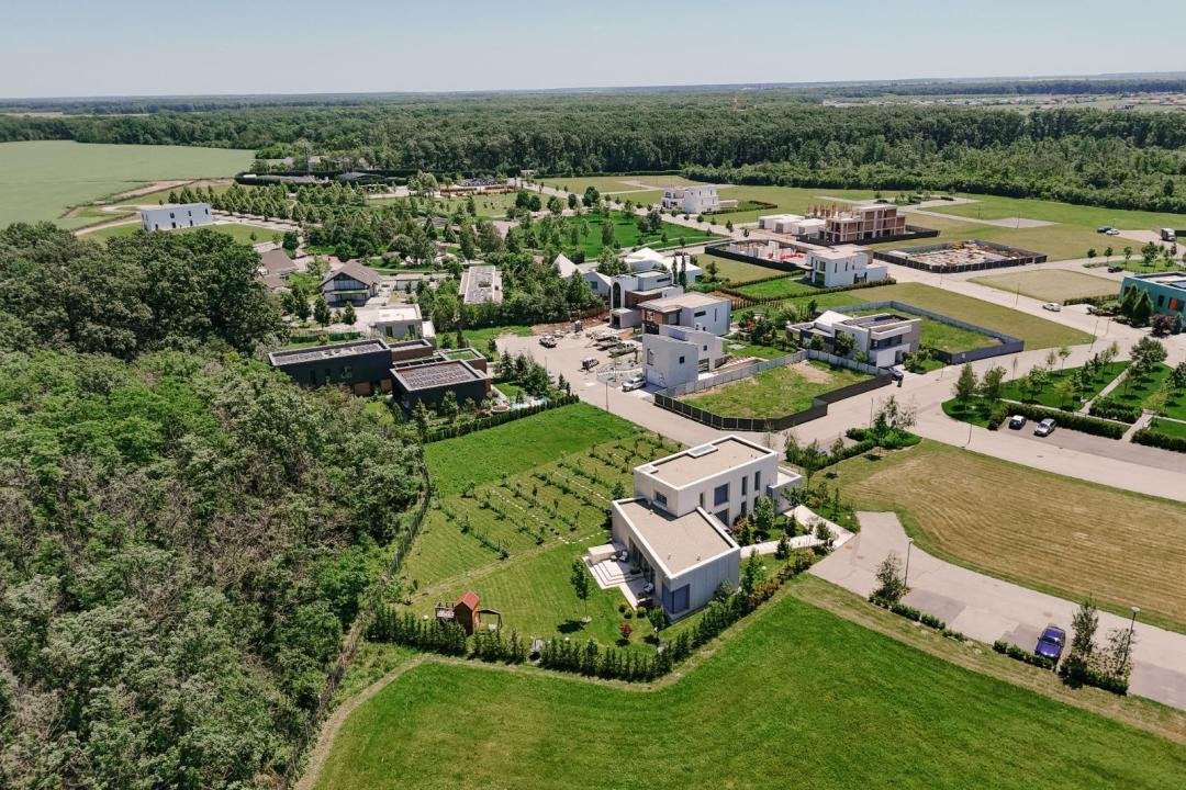 Această vilă modernă din Dumbrava Vlăsiei oferă un mix rar între arhitectură contemporană, tehnologie avansată și liniștea unei comunități exclusiviste, aflate în imediata vecinătate a pădurii.