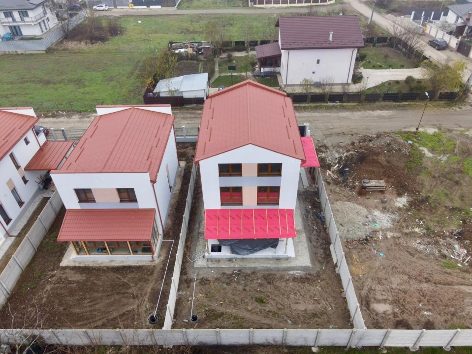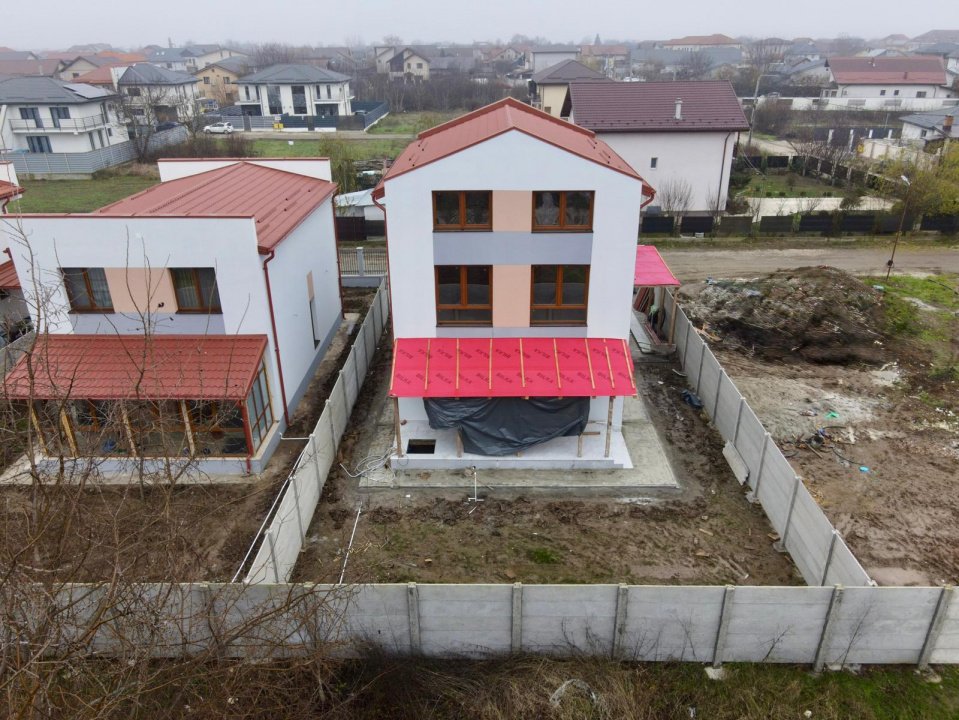 Vila este construita in anul 2025 pe structura de beton cu izolata termic si beneficiaza de: tamplarie tripan cu 4 sezoane; mansarda izolata cu celuloza ecologica; curent trifazat cu distribuitor pe fiecare etaj; centrala Ariston 30kW, beci cu put, statie de dedurizare si hidrofor; sistem de antiefractie si camere video.