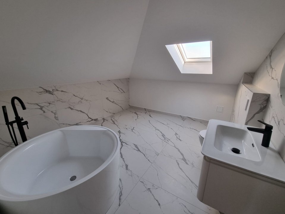 Va invitam sa descoperiti un imobil deosebit situat in Orasul Buftea, pe strada Anemonelor nr.26. Casa are o suprafata totala de 160 mp, constructie in Anul 2024, are 5 Camere: living, camera de zi si 3 dormitoare, 3 Grupuri Sanitare si 2 dressinguri. Imobilul are regim de inaltime: P+M, suprafata construita la sol: 110 mp si este construit pe un teren cu o suprafata totala de 357 mp. Casa este construita din Caramida si BCA. La exterior este izolata cu termosistem de 10 cm si este acoperita cu tabla. Casa este conectata la toate utilitatile: Apa, Canalizare, Gaz, Electricitate, Cablu TV, Internet, dispune si de un put, Incalzirea se face cu Centrala Termica. O locuinta ideala pentru rezidenta, casa de vacanta sau oportunitate de investitie pentru diverse afaceri.Va asteptam la Vizionare.