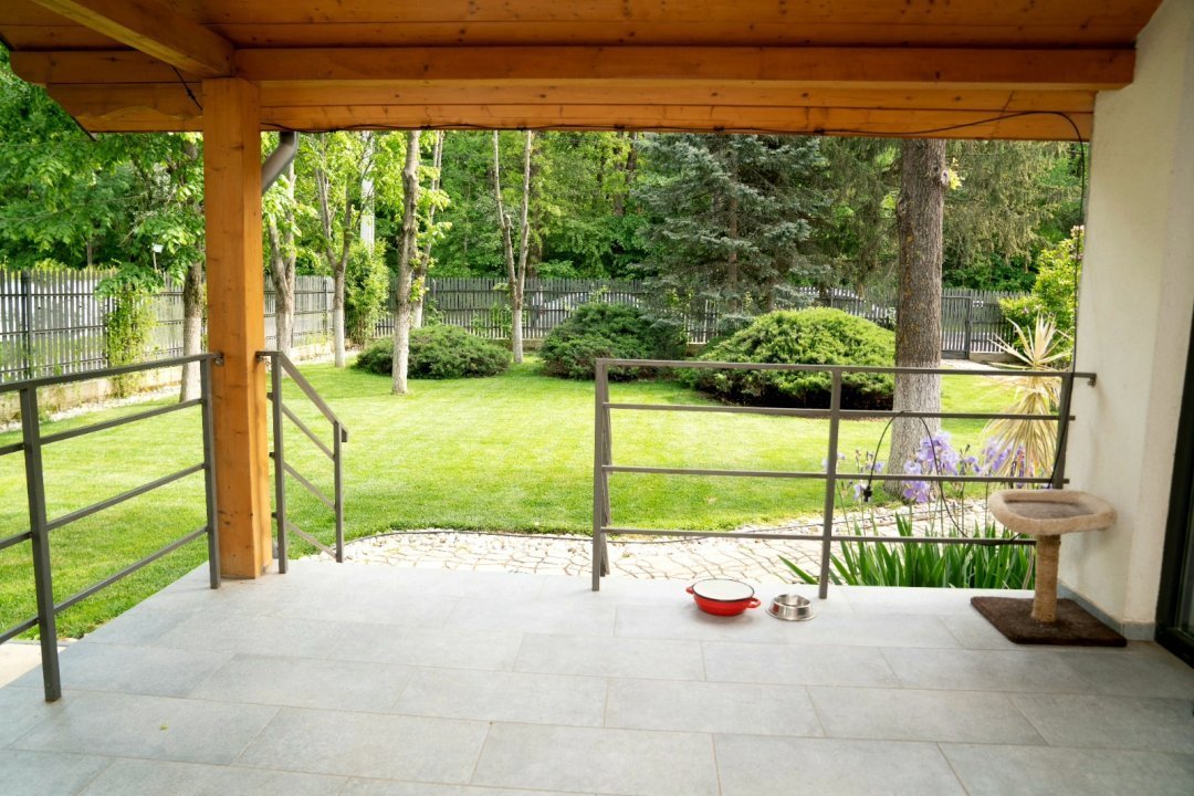 Are o gradina spectaculoasa ajunsa la maturitate, brazi, flori, gazon si a fost gandita in detaliu pentru a aduce bucurie si relaxare proprietarilor.