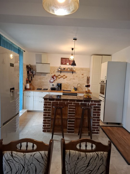 Compartimentarea este practică și bine gândită, oferind tot confortul necesar unei familii moderne. Casa dispune de 4 dormitoare, 2 băi și un living spațios, ideal pentru relaxare și momente petrecute împreună. Bucătăria este complet mobilată și utilată, iar la interior se remarcă finisajele de calitate și sistemul de încălzire în pardoseală, asigurat de centrala termică pe gaz, care garantează un climat plăcut pe tot parcursul anului. Proprietatea beneficiază, de asemenea, de un beci funcțional și un pod circulabil, perfecte pentru spațiu suplimentar de depozitare. In plus, proprietatea beneficiaza de protectie, avand si un sistem de siguranta video profesional. Construcția este solidă, realizată pe structură de grinzi și stâlpi din beton armat, cu zidărie din BCA, finalizată în anul 2020. Curtea este amenajată și include un barbeque din cărămidă, o stație de încărcare pentru mașini electrice, iar la nevoie există posibilitatea construirii unui garaj. Casa se vinde complet mobilată și utilată fiind pregătită pentru mutare imediată. Această proprietate reprezintă alegerea ideală pentru o familie care își dorește un cămin modern, sigur și confortabil, situat într-o zonă liniștită, bine conectată la oraș, cu vecinătăți prietenoase și acces facil către toate punctele de interes.