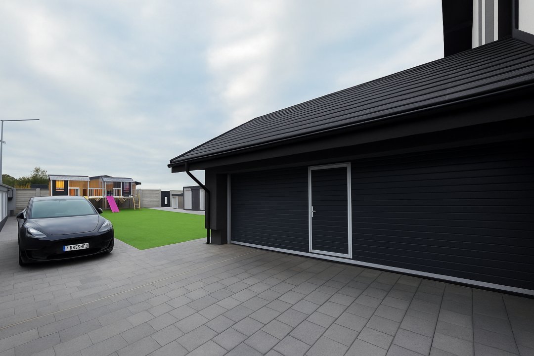 Poartă automată și ușă de garaj MCA, garaj pentru 2 autoturisme cu acces direct în casă
