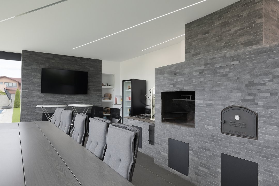 Foișor de 50 mp, închis cu sticlă, încălzit și dotat complet: șemineu, cuptor pe vatră, grătar, afumătoare, plită țărănească, plită pe gaz, frigider de vinuri, TV, frigider/congelator