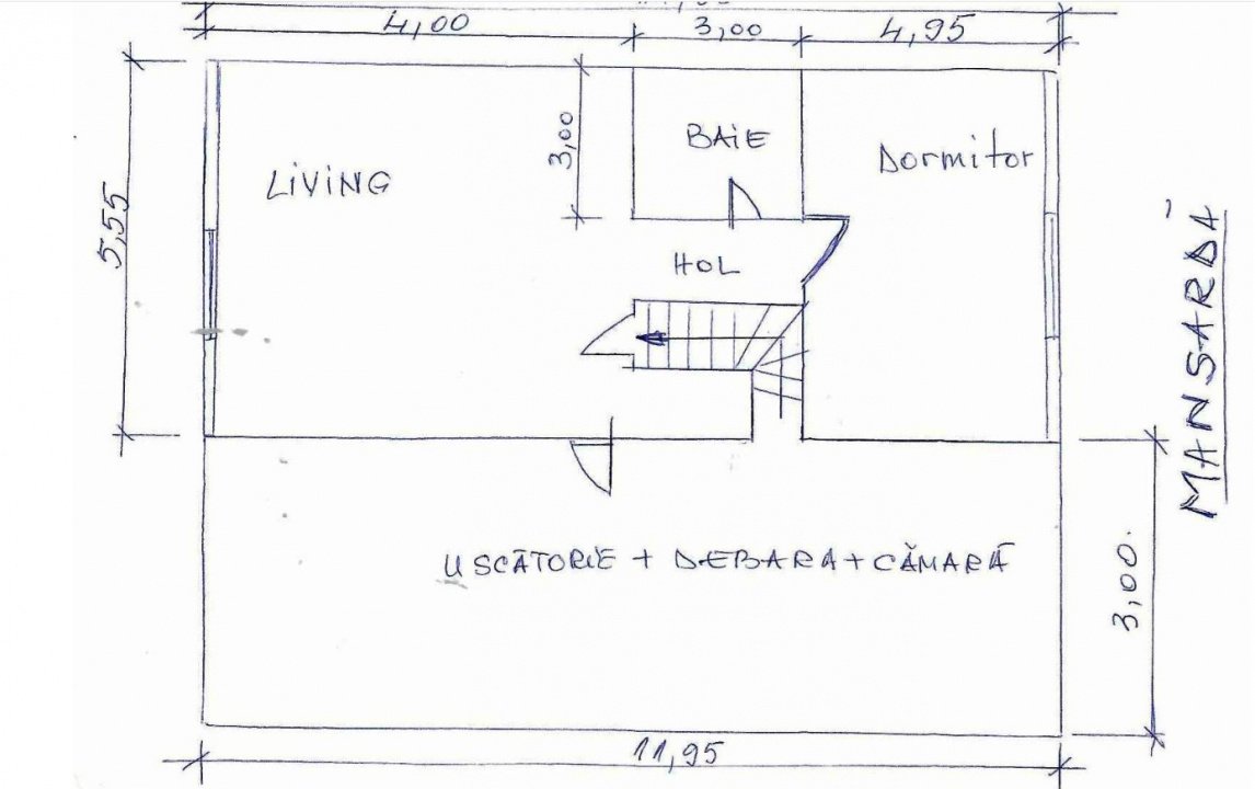 La Mansarda: Living, dormitor, baie, uscatorie.
