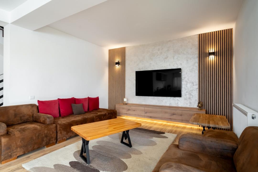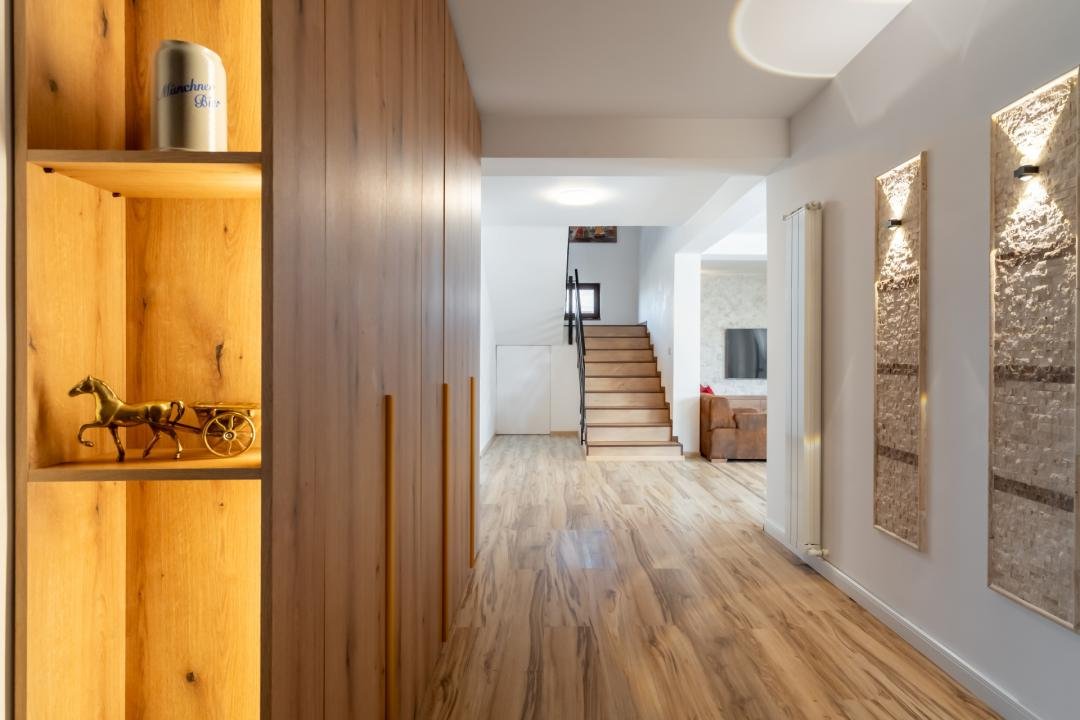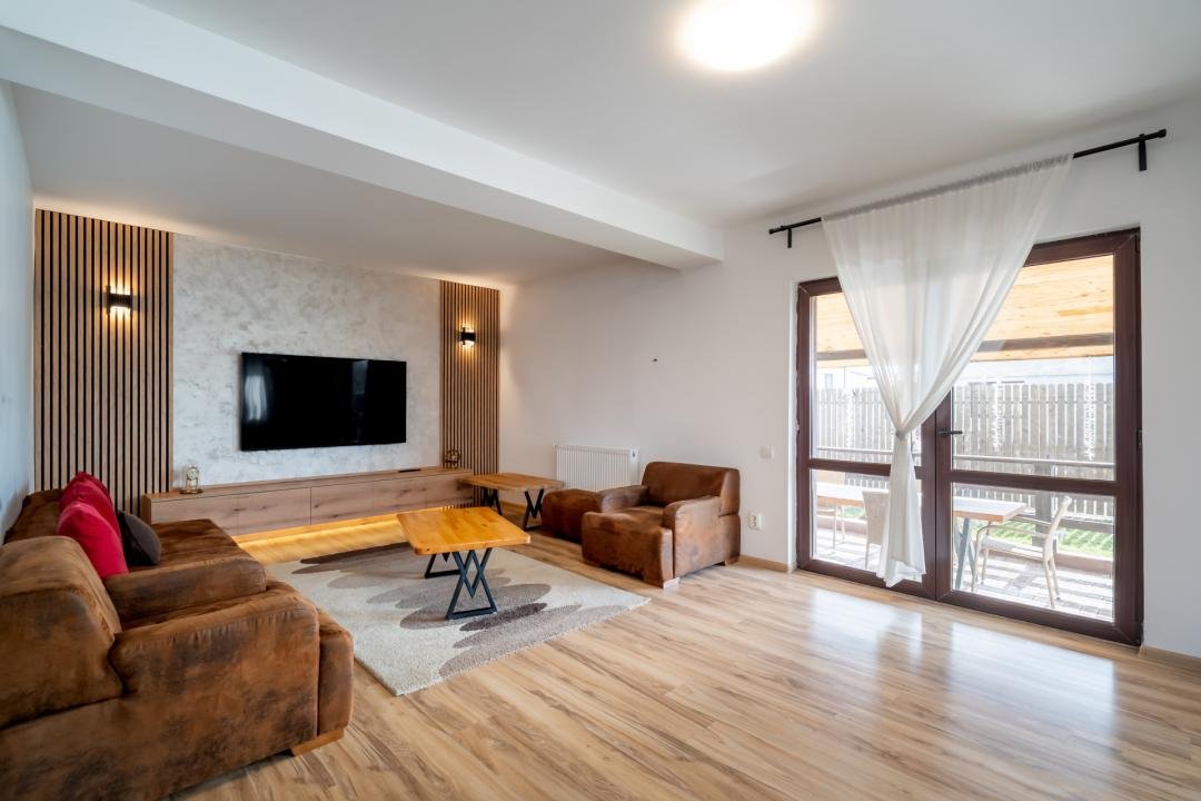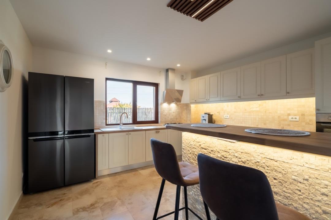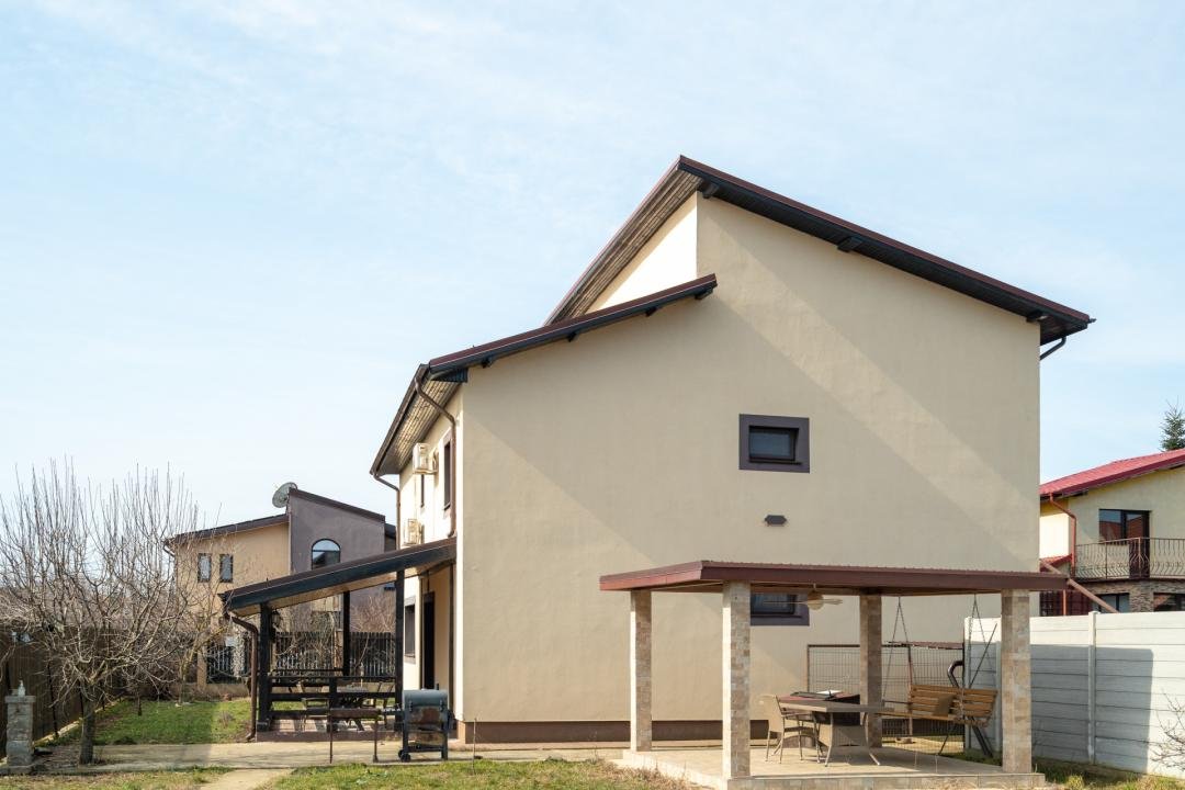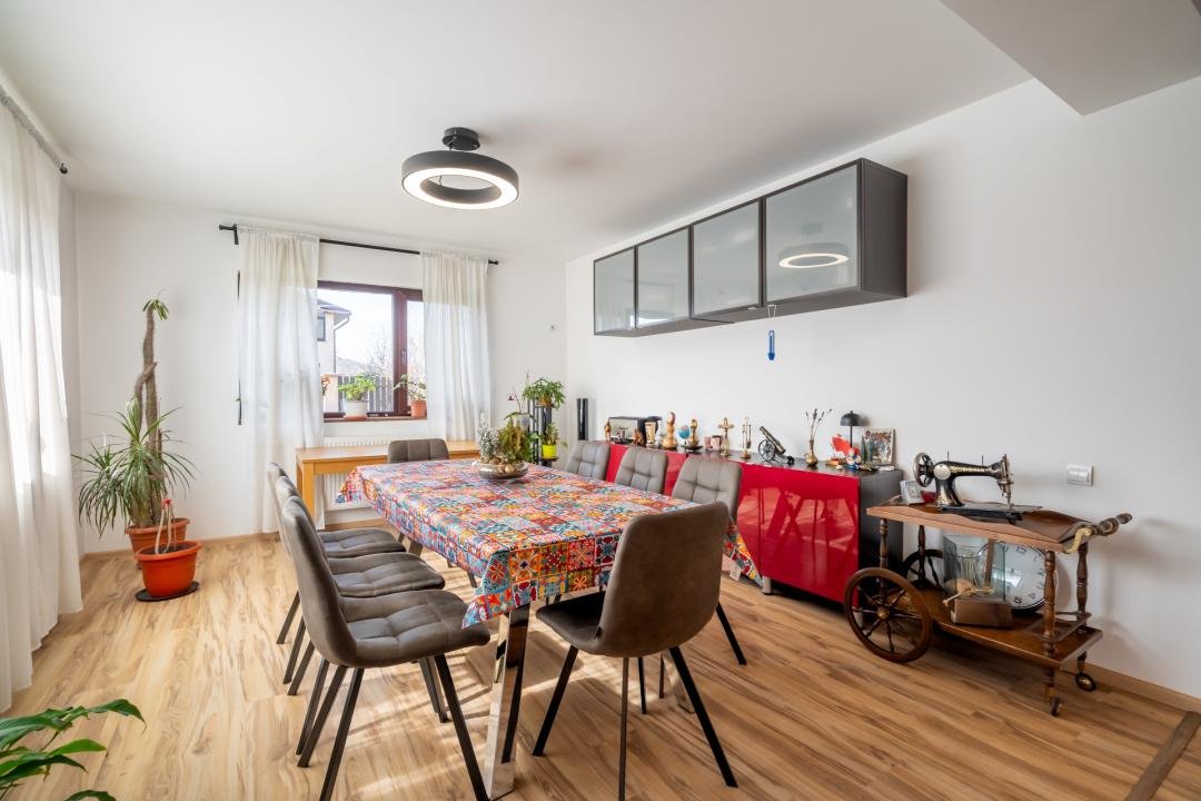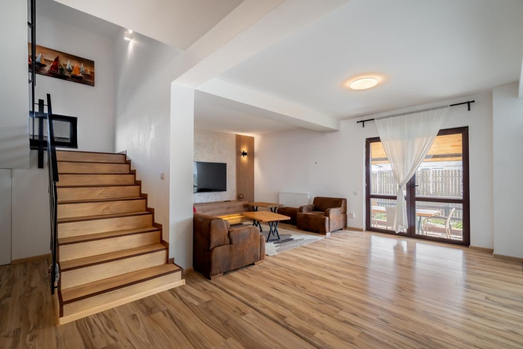 Din imagini se vede foarte clar că vorbim despre o casă deja pusă în valoare: zone exterioare utile, terasă acoperită, volum interior generos, living modern, bucătărie amenajată complet, finisaje calde și actuale. Practic, cumpărătorul nu achiziționează doar metri pătrați, ci timp câștigat, stres eliminat și o locuință gata de folosință.