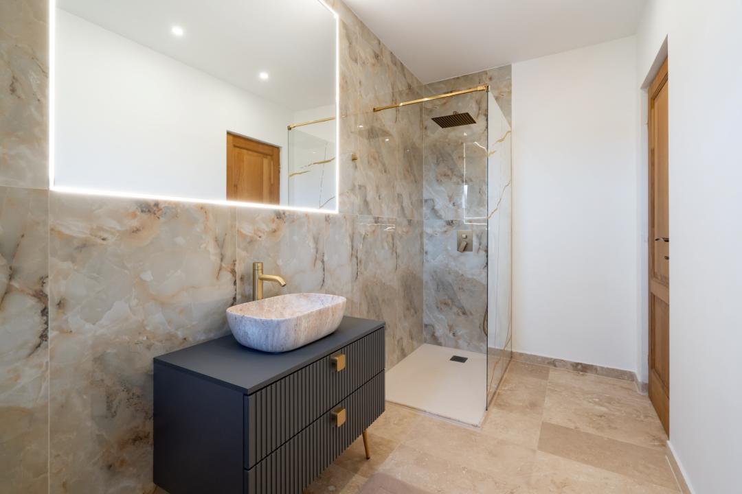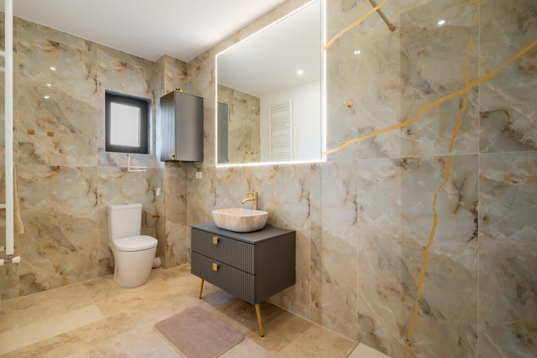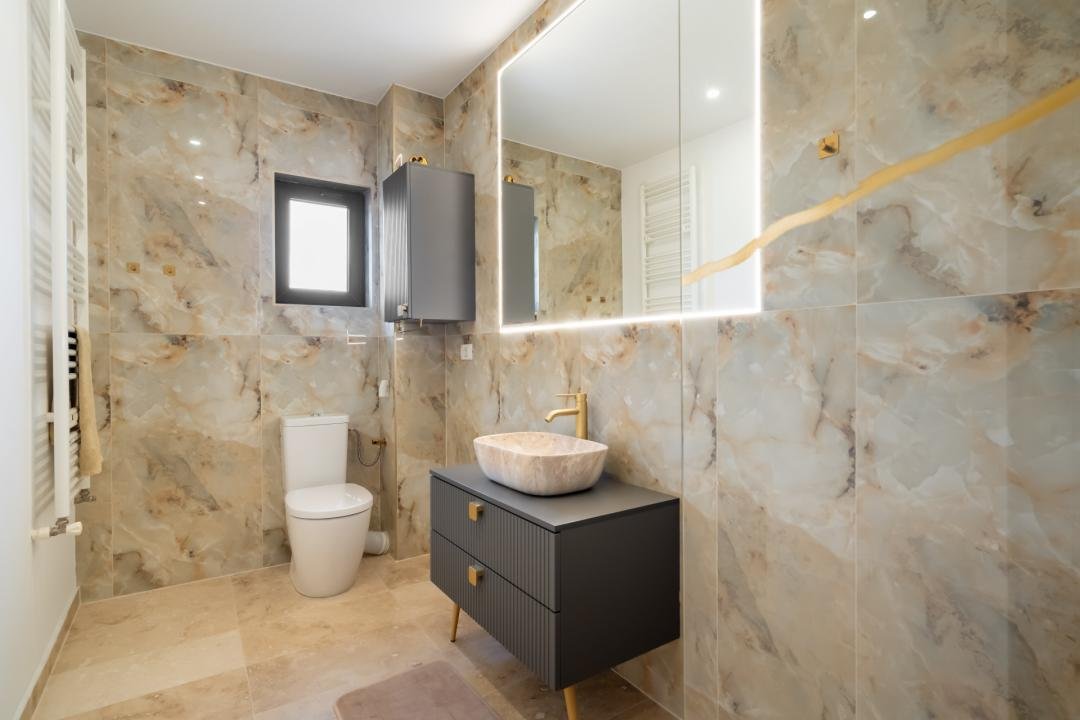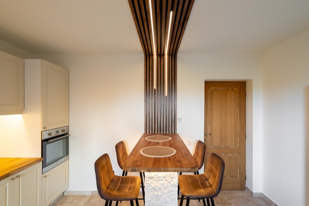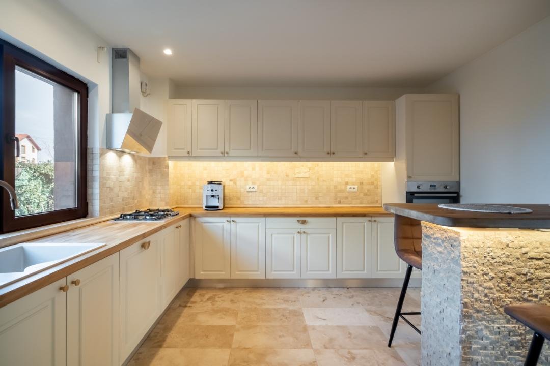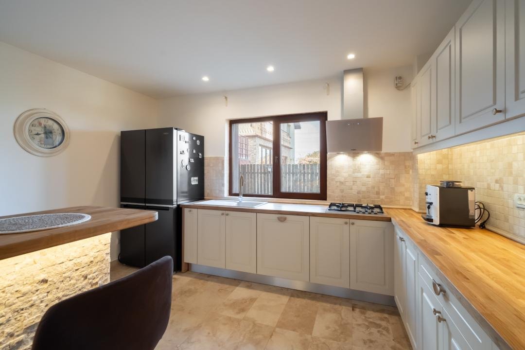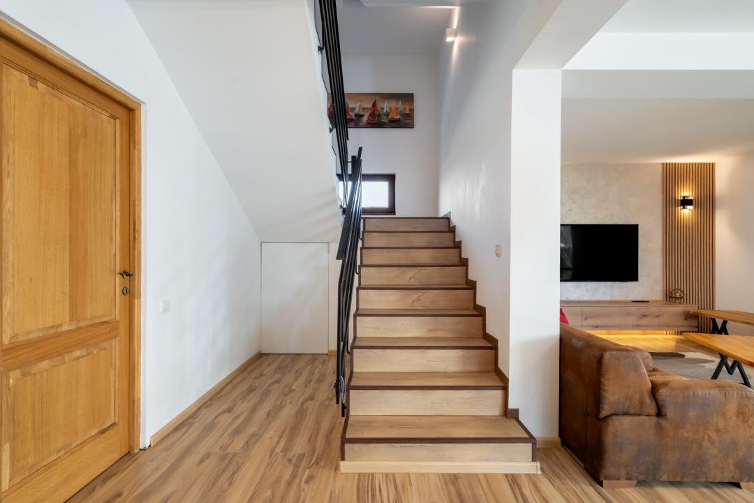 Din imagini se vede foarte clar că vorbim despre o casă deja pusă în valoare: zone exterioare utile, terasă acoperită, volum interior generos, living modern, bucătărie amenajată complet, finisaje calde și actuale. Practic, cumpărătorul nu achiziționează doar metri pătrați, ci timp câștigat, stres eliminat și o locuință gata de folosință.