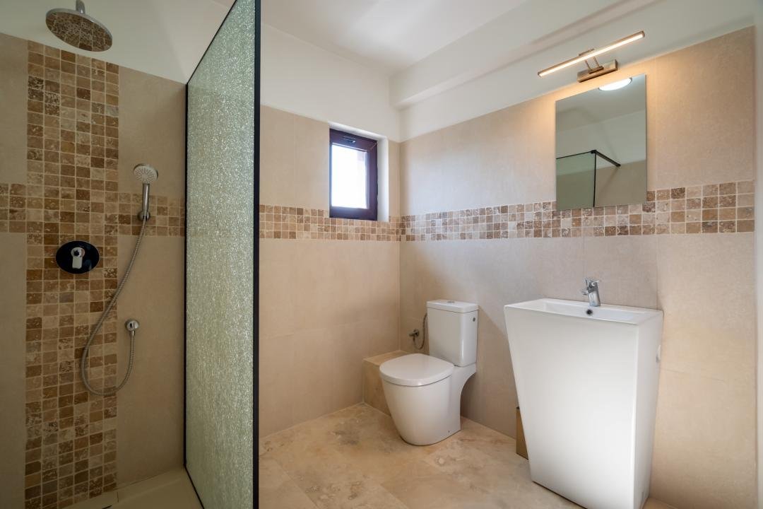 Casa este construită pe cadre cu stâlpi, cu închideri exterioare din cărămidă de 30 cm, izolație exterioară de 10 cm polistiren și compartimentări interioare din cărămidă de 15 cm. Este o construcție care transmite exact ceea ce caută mulți cumpărători astăzi: spațiu real, structură serioasă și costuri evitate din prima zi.
