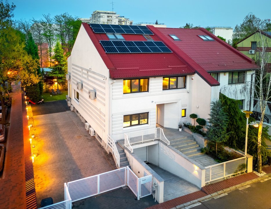 La exterior, o siluetă sobră, elegantă. La interior, un labirint de rafinament distribuit armonios pe Demisol, Parter, Etaj și Mansardă, cu o suprafață utilă de 381 mp, construită pe un teren cu 347 mp liberi și o amprentă de 133 mp. Cinci locuri de parcare pentru fiecare oaspete important, dar doar unul are privilegiul garajului de la demisol.