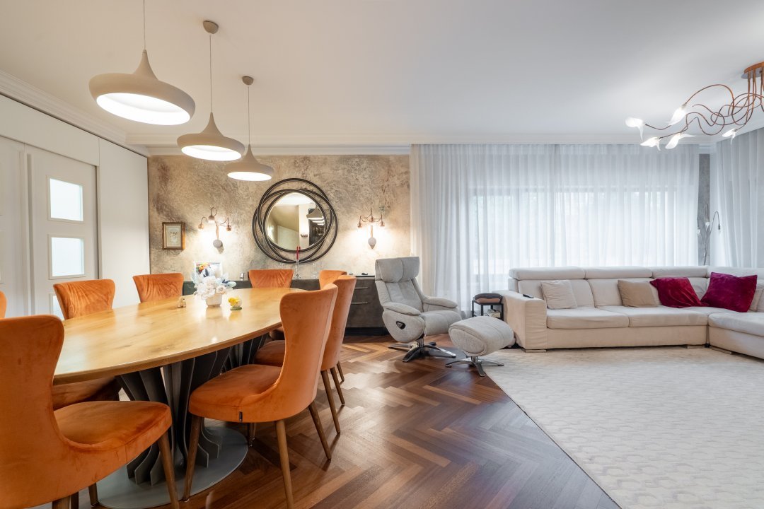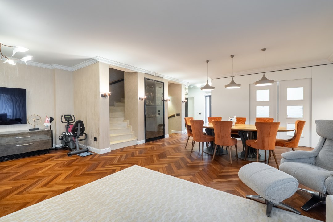 Șapte camere. Sau poate șapte povești. Șase dormitoare, fiecare cu personalitatea lui, și cinci băi, unde liniștea își face loc printre finisaje de lux atent alese. Două balcoane și o terasă oferă vederi către un cartier care tace, dar veghează. Un spațiu unde timpul se dilată și zgomotul orașului nu are cod de acces.
