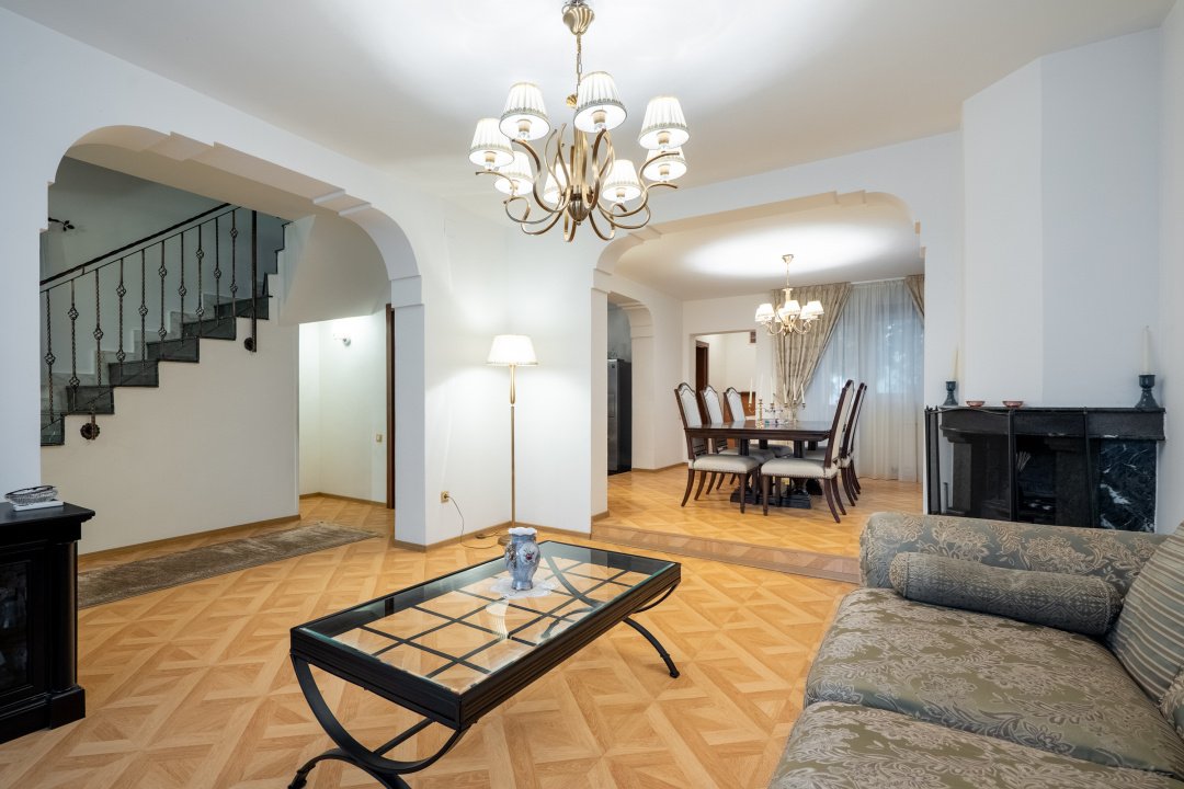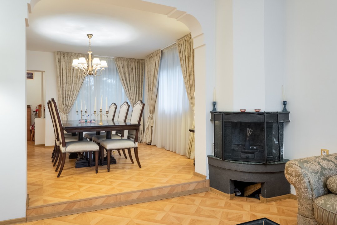 Proprietatea este dezvoltată pe demisol + parter + etaj + mansardă, are 8 camere, o suprafață utilă de aproximativ 334 mp și un teren de 670 mp, cu curte amenajată și piscină exterioară încălzită.