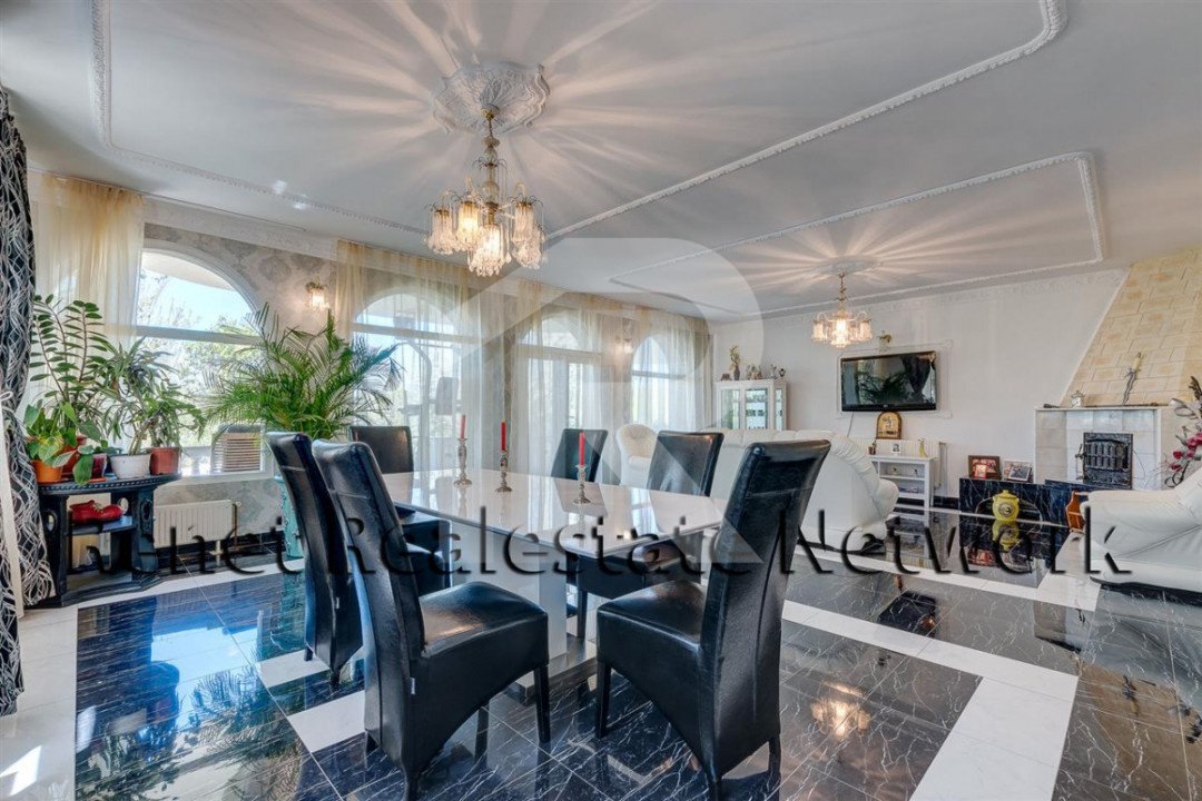 Cu un aer elegant și plin de farmec, această casă vă întâmpină cu **8 camere** atent gândite pentru confortul dumneavoastră. Arhitectura sa rafinată include **2 bucătării** moderne, unde poveștile se spun în jurul mesei, și **6 dormitoare** ce oferă refugii liniștite pentru toți membrii familiei. Cele **5 băi** sunt spații de relaxare, fiecare cu geamuri mari, aducând lumina naturală și priveliști îmbietoare.