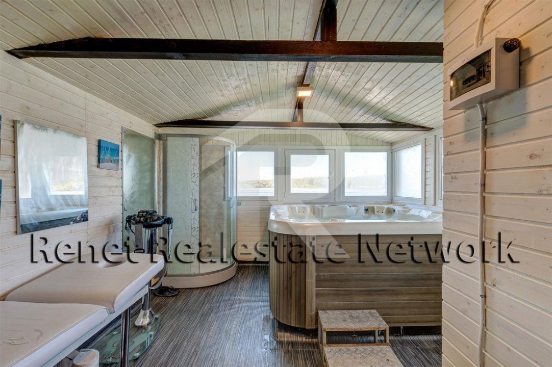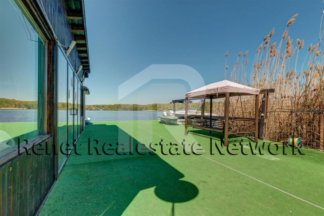 Vila dispune de **2 balcoane** și **3 terase** ideale pentru serile de vară petrecute cu prietenii, savurând un pahar de vin și admirând apusurile de soare pe lac. **Curtea individuală** este locul perfect pentru a petrece clipe de neuitat în aer liber, având o deschidere directă la lac, acolo unde se află un **ponton propriu**, gata să vă ofere momente de relaxare și distracție.